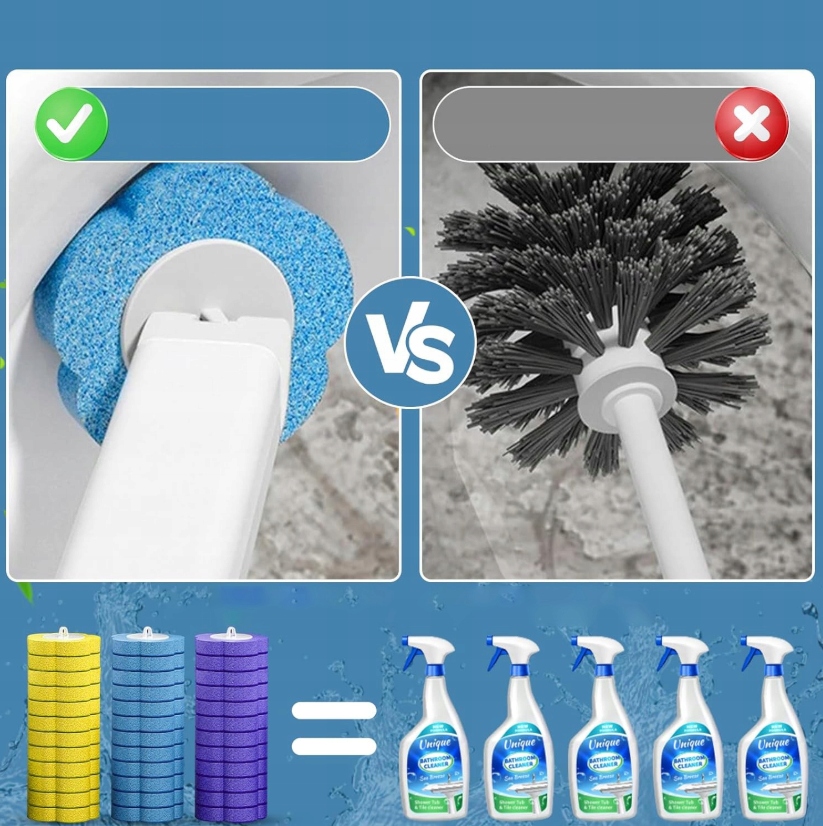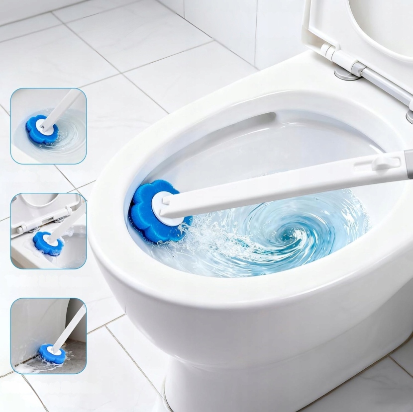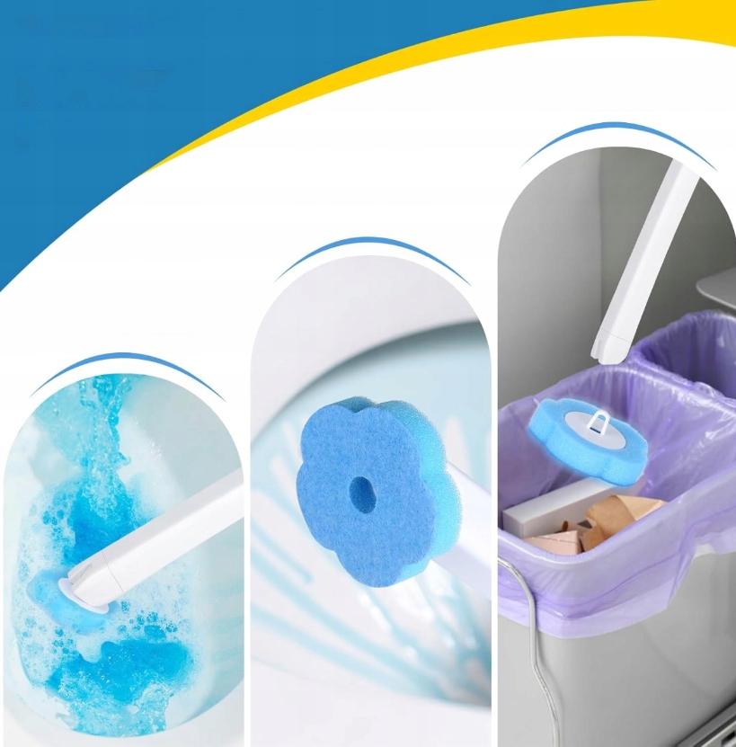 - Цей одноразовий засіб для миття унітазів поєднує в собі функції туалетної щітки, мийного засобу та ароматизатора.