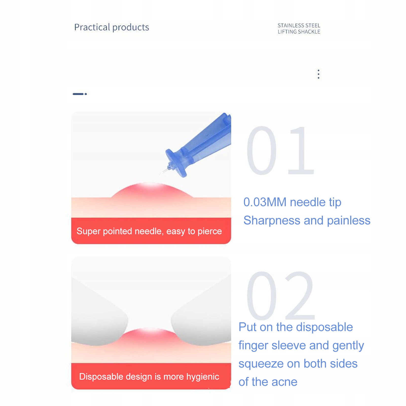 1. Одноразовий дизайн: голка проти прищів розроблена як одноразова, чиста та гігієнічна, з легким болючим проколом.