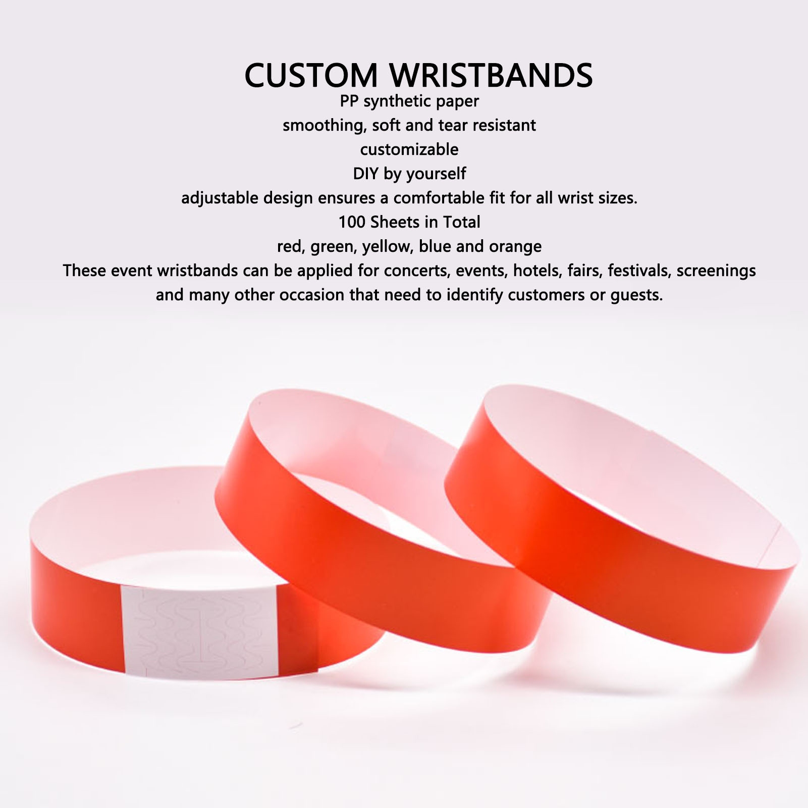 100 аркушів одноразових браслетів для вечірок, різних кольорів, простих у використанні поліпропіленових універсальних паперових браслетів для спортивних заходів