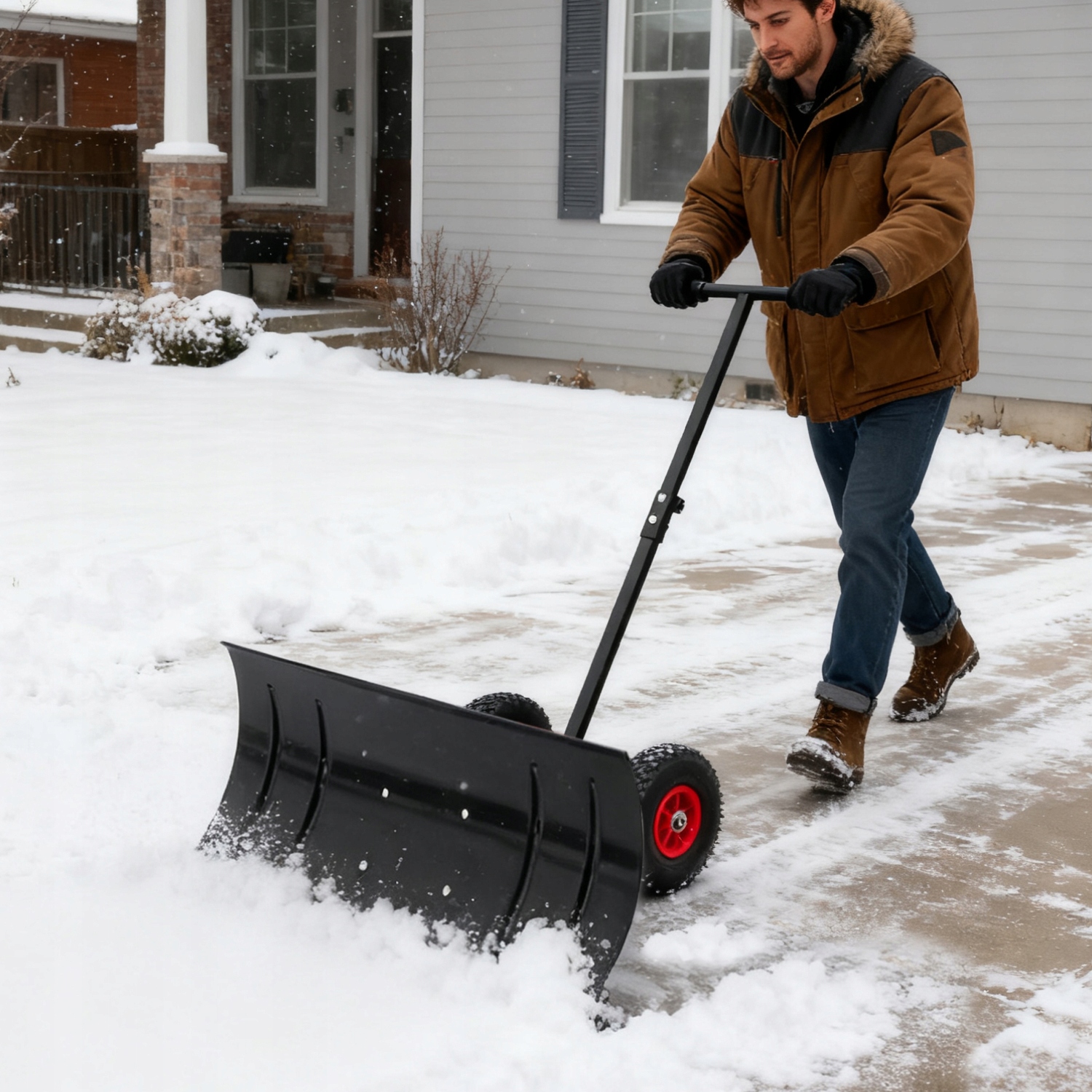 - 【Легке ковзання】Відчуйте виняткове прибирання снігу: міцні 26-сантиметрові гумові колеса плавно ковзають по снігу та землі, зменшуючи опір снігу та значно розвантажуючи спину. Це робить інтенсивне прибирання снігу легким і комфортним, заощаджуючи час і зусилля.