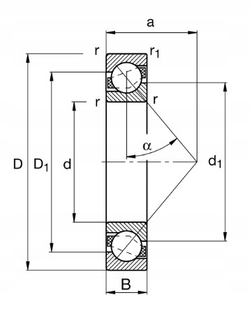 Контактні кулькові підшипники однорядні з кутом контакту 40° призначені для перенесення відносно великих осьових навантажень