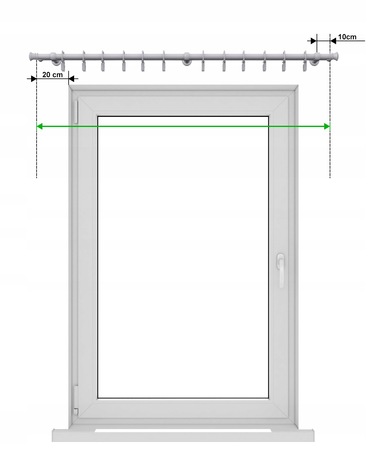 Щоб вибрати відповідну довжину карниза, рекомендовано, щоб він був принаймні на 40 см ширше ніж віконна ніша (20 см з кожного боку).