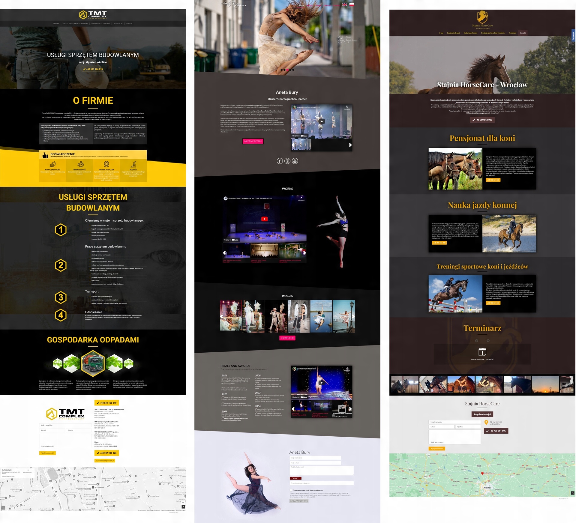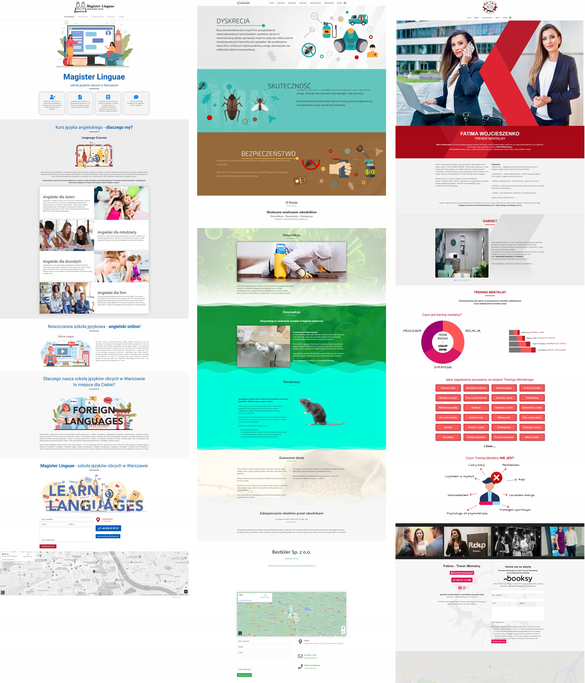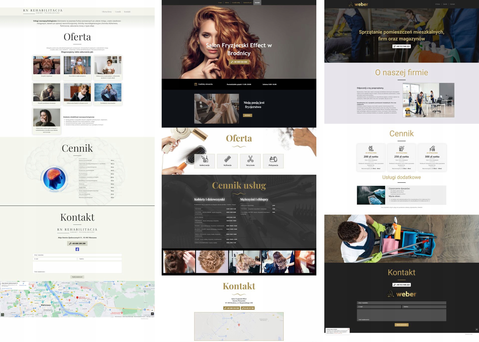 На такій сторінці ми можемо розмістити таку інформацію, як: про компанію, пропозицію, послуги, галерею, контактні дані, місцезнаходження з картою Google, контактні дані форми тощо*.