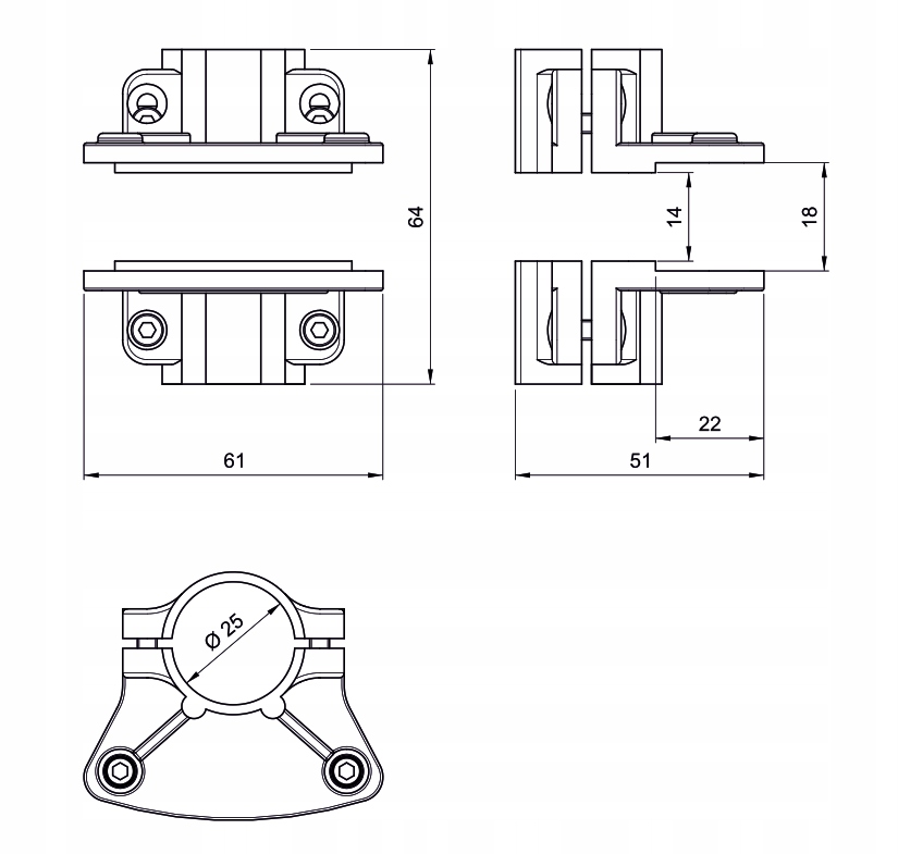 ОДНОСТОРОННИЙ ПЛАСТИНОТРИМАЧ R-61 ДЛЯ ТРУБИ FI 25 ММ