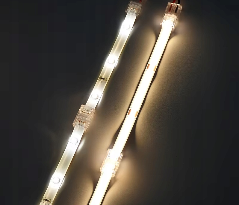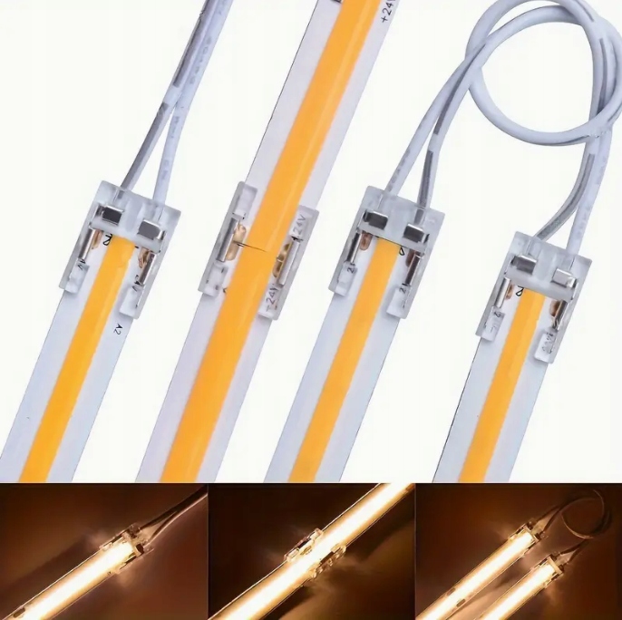 cob> (чіп на борту) з шириною ламінату 8 мм. В ідеалі, рішення для поєднання кайф -стрічок в одному довгій епізоді без пайки! Просто просуньте світлодіодну стрічку до визначеного місця, і це все!