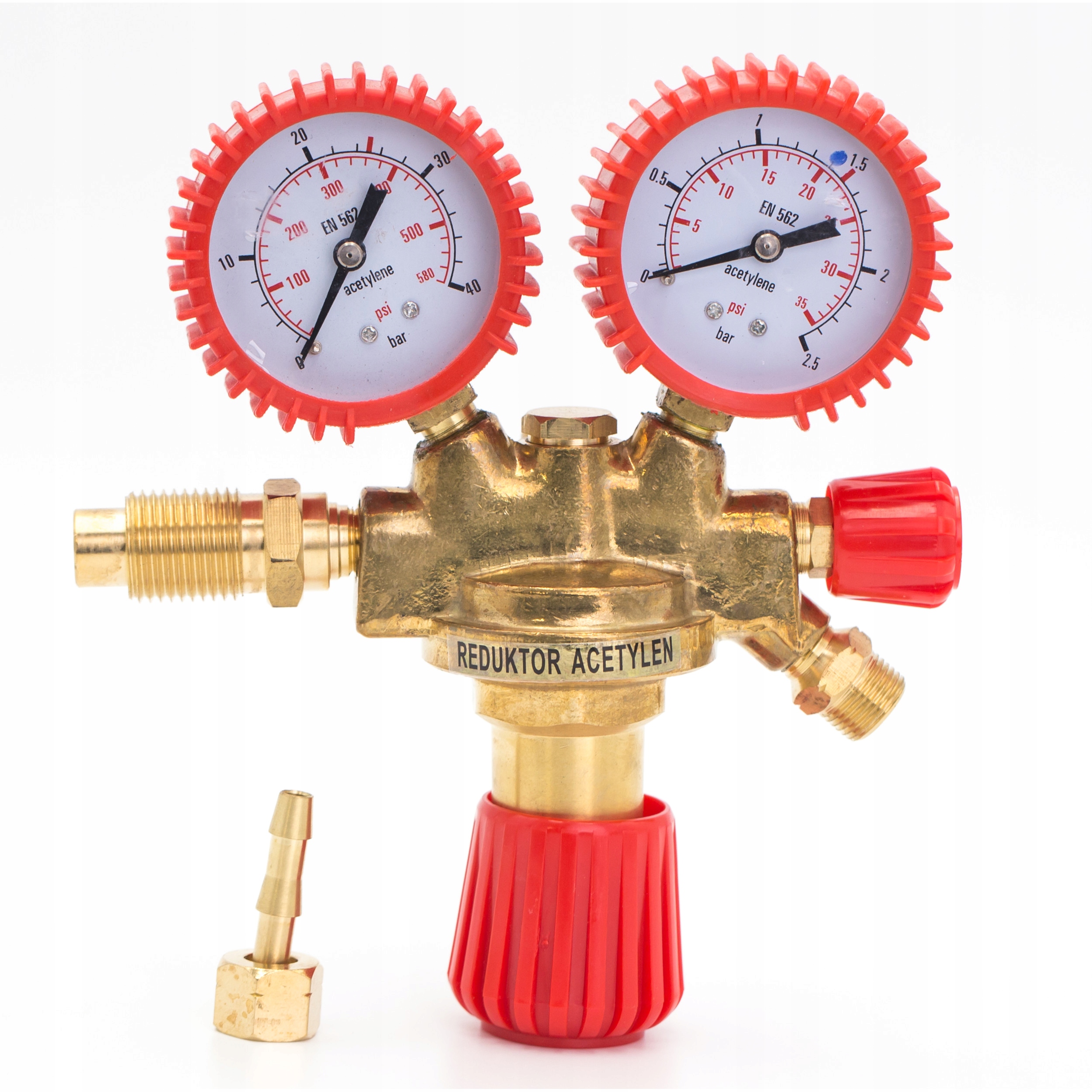 Редуктор ацетиленовий одноступінчастий з двома манометрами, призначений для ацетилену.