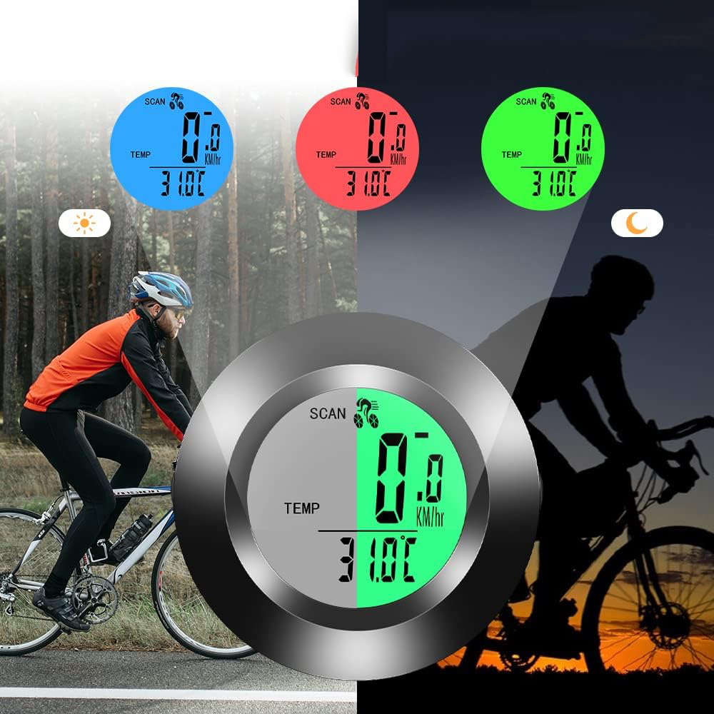 🚲3-кольоровий РК-дисплей з підсвічуванням: велокомп'ютер із РК-дисплеєм високої роздільної здатності, можна легко читати все дані вночі, також при сонячному світлі. Новий автоматичний цикл 3-х кольорового світлодіодного підсвічування, два режими освітлення: стандартний режим і режим Always-on. У стандартному режимі підсвічування вмикається на 4 секунди.