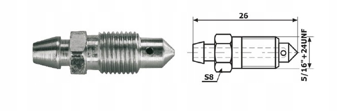 ODPOWIETRZNIK HAMULCOWY 5/16 X 24UNF S8 DŁ. 26 ODP. 45