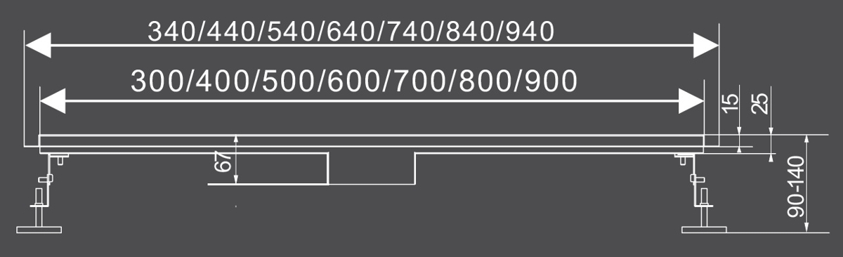 Широкий вибір доступних розмірів дозволяє оптимально підігнати його довжину до розмірів кабіни чи плитки та дозволяє спланувати розташування душу з більшою свободою, ніж у випадку з традиційними душовими піддонами.