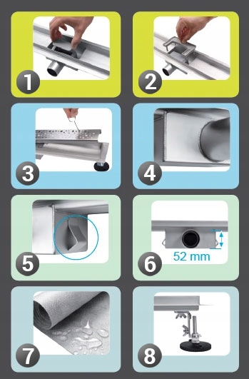 Лінійний злив Napo має мокрий сифон (традиційний). Перевагами цього типу сифона є: