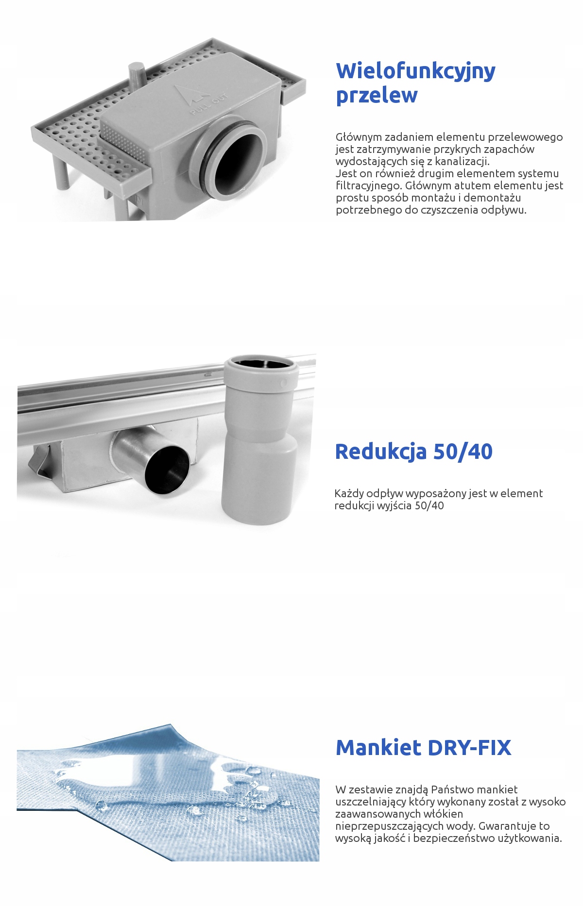 ODPŁYW LINIOWY 90CM UNIWERSALNY 2w1 NISKI SYFON