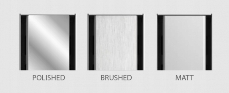 - Доступні кольори: сріблястий лак, срібний пензлик, сріблясто-матовий, медово-золотистий лак, медовий золота кисть, медово-золотий матовий, золотий лак, золота кисть, золотий матовий, яскраво-золотий лак, яскраво-золотий пензель, яскраво-золотий матовий, графітово-чорний лак, графітово-чорний пензель, графітово-чорний матовий, мідний полірування, мідна щітка , мідна матова