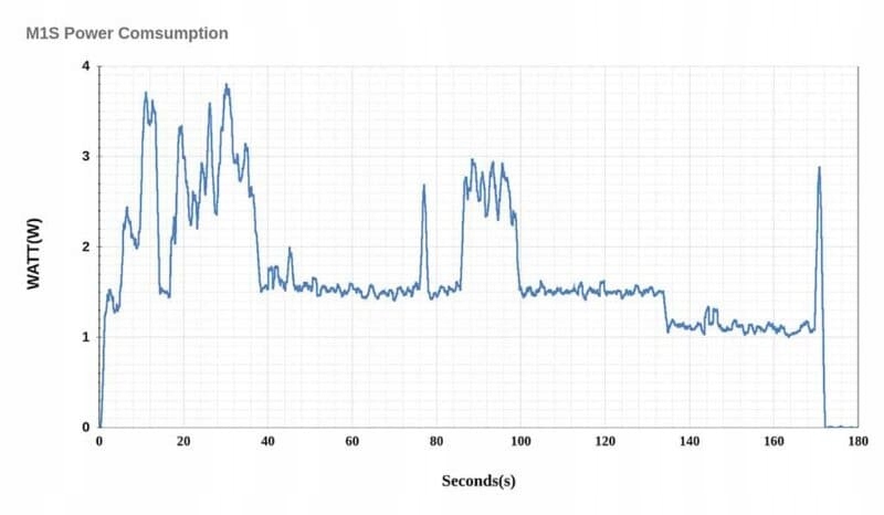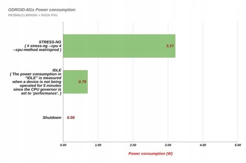 ✅Під час роботи M1S і переведення настільної ОС Ubuntu у стан очікування споживання електроенергії становить максимум 3,7 Вт, а в режимі очікування графічного інтерфейсу — зниження до 1,5 Вт. Коли монітор HDMI від’єднано, енергоспоживання в режимі очікування падає до 1,0 Вт, а коли кабель Ethernet від’єднано, воно падає до 0,7 Вт. Під час навантажувального тесту ЦП без виходу HDMI та з’єднання Ethernet споживання електроенергії становить приблизно 3,2 Вт, що демонструє енергозбереження приблизно на 25% порівняно з оригінальним ODROID-M1.
