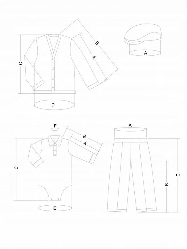 - Довжина рукава від коміра "B" 14 см.