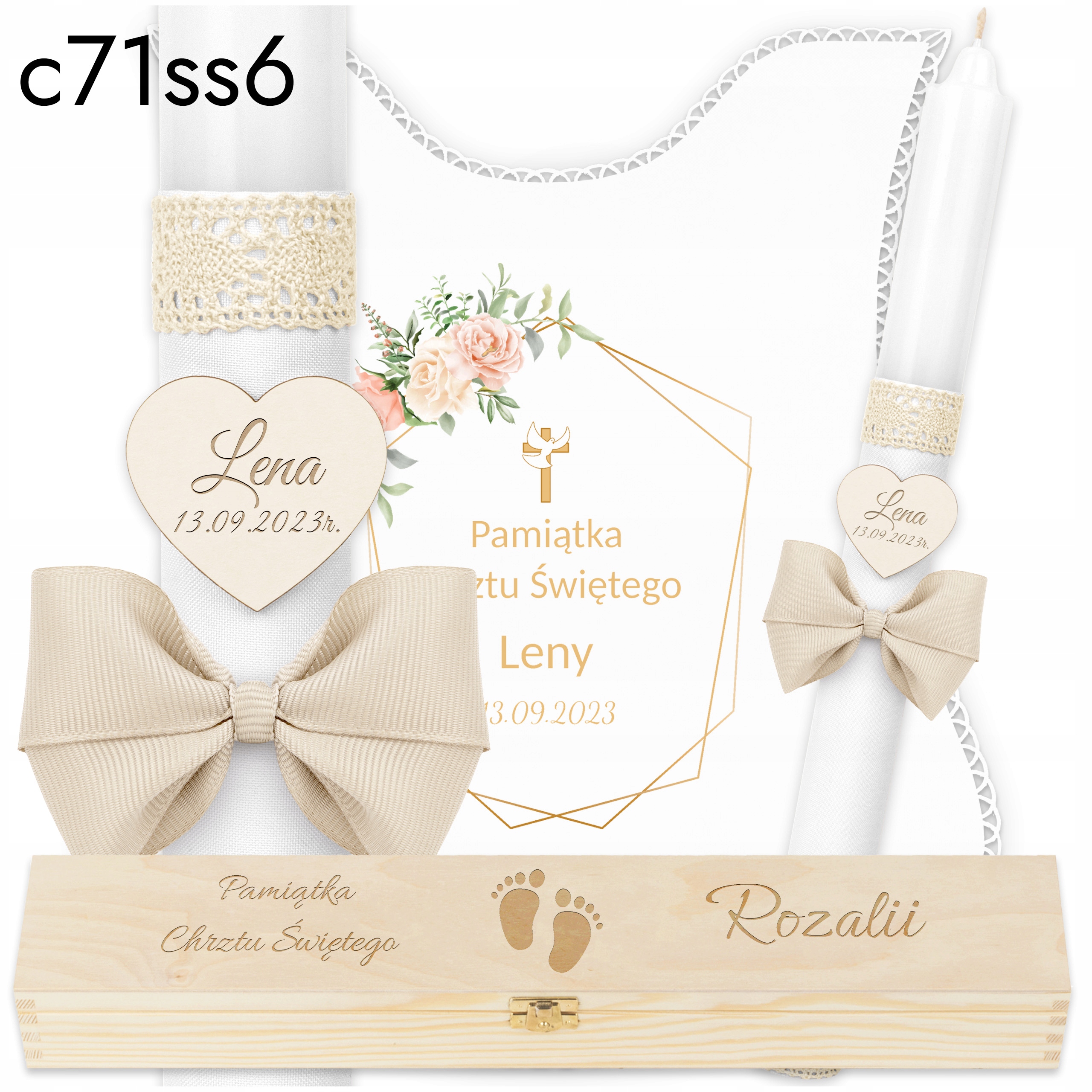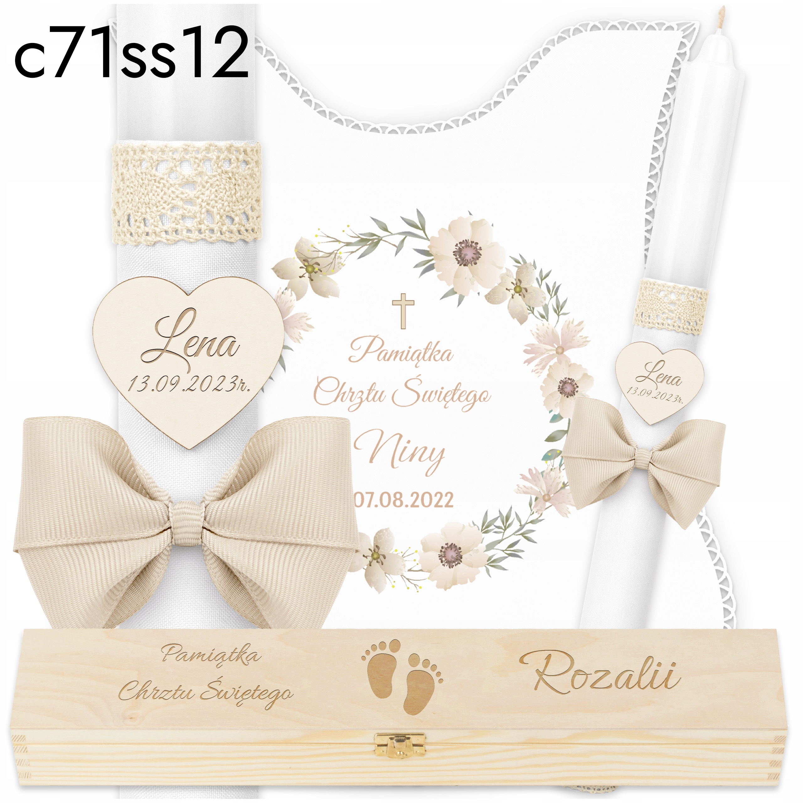 Хрестильне вбрання та свічка + коробка для свічок IHS Baptism Candle