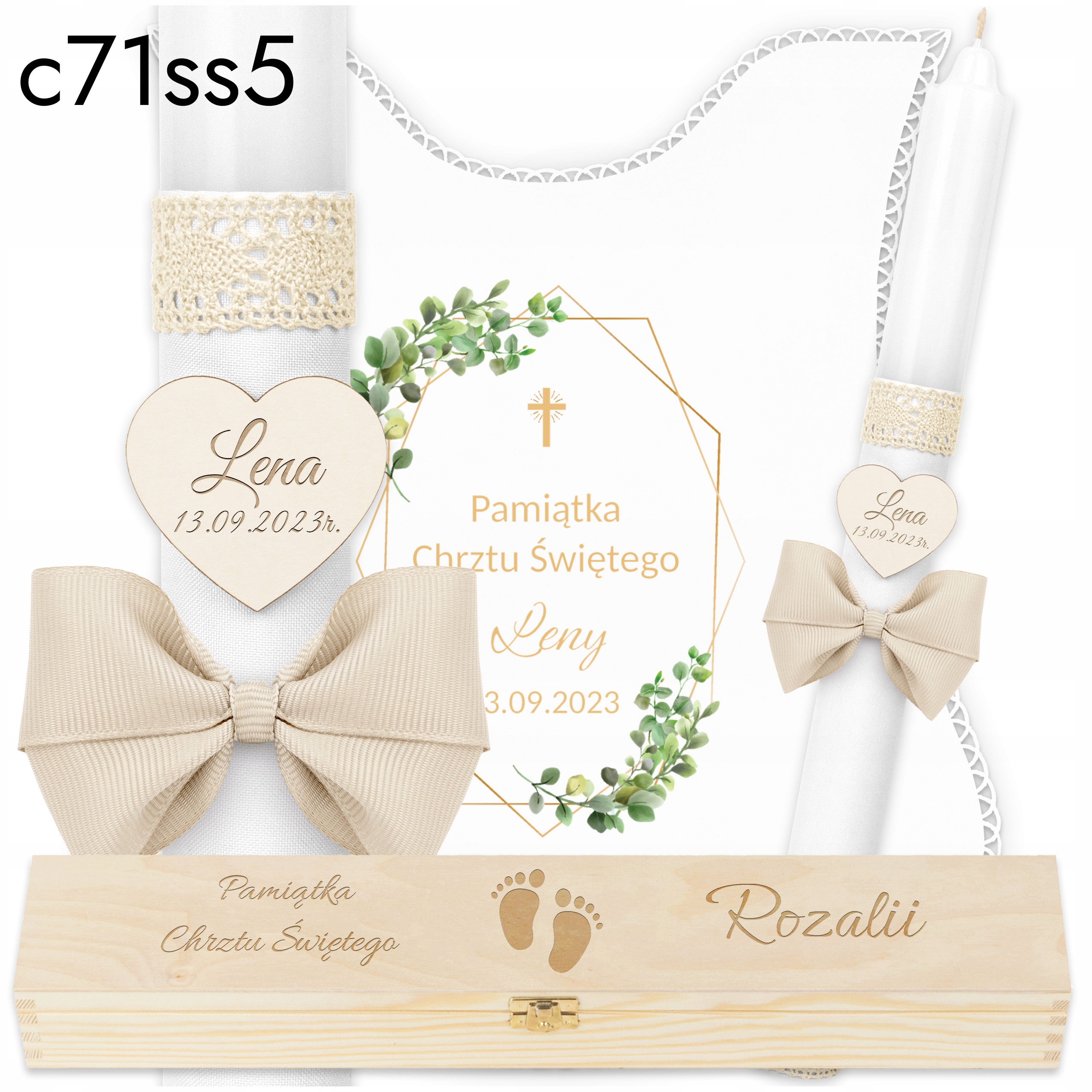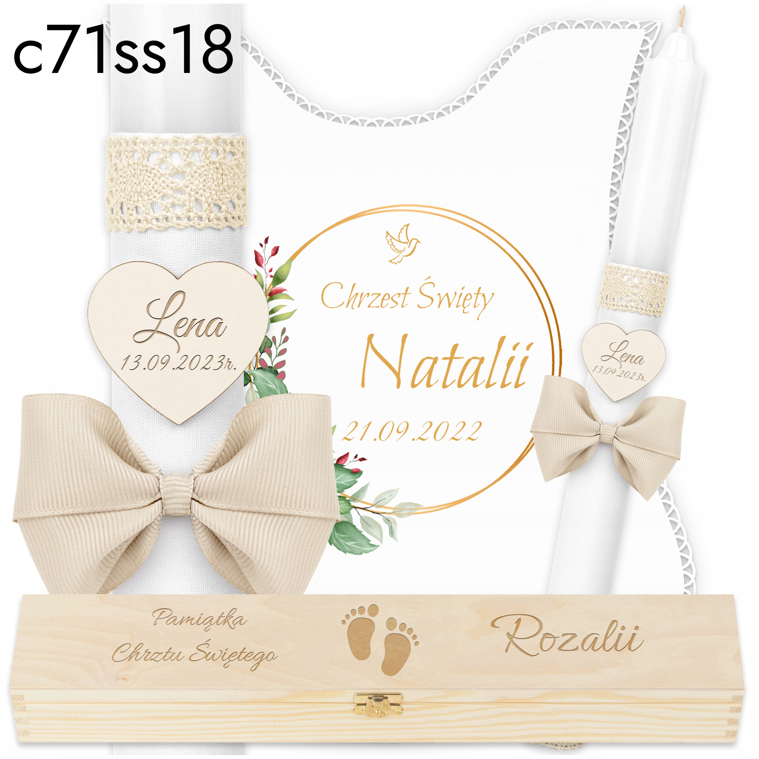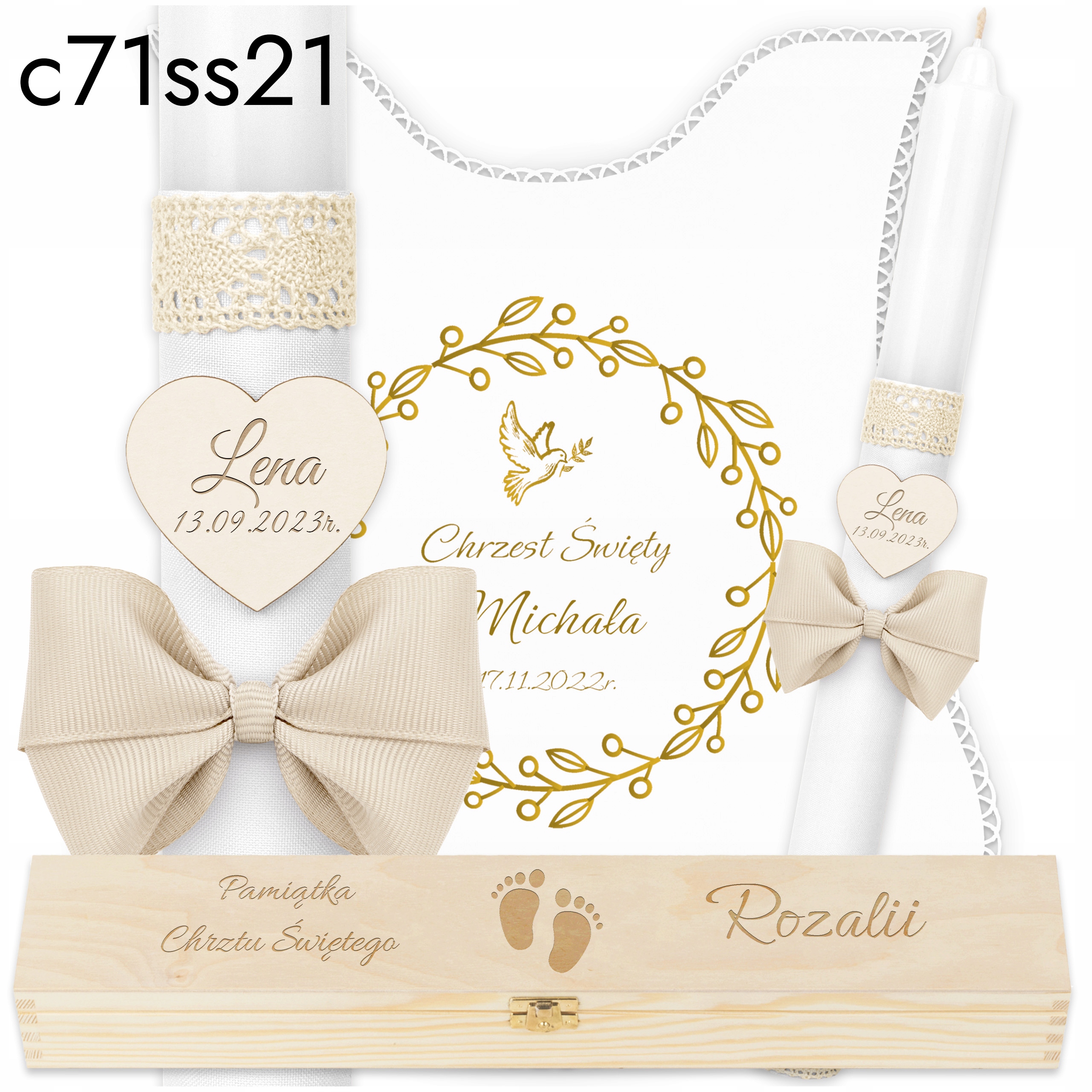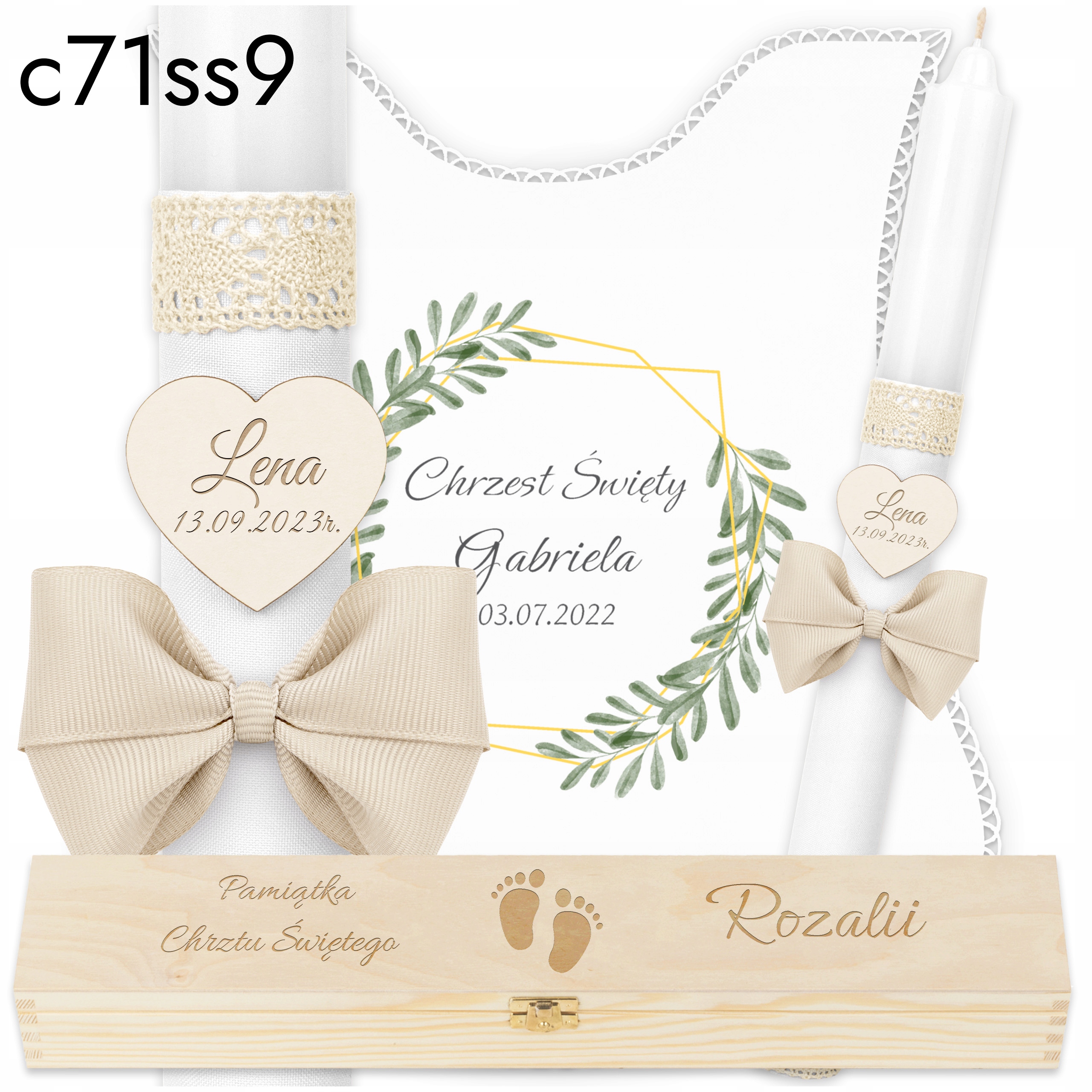 Одяг для хрещення і свічка + коробка для свічок IHS Baptism Candle