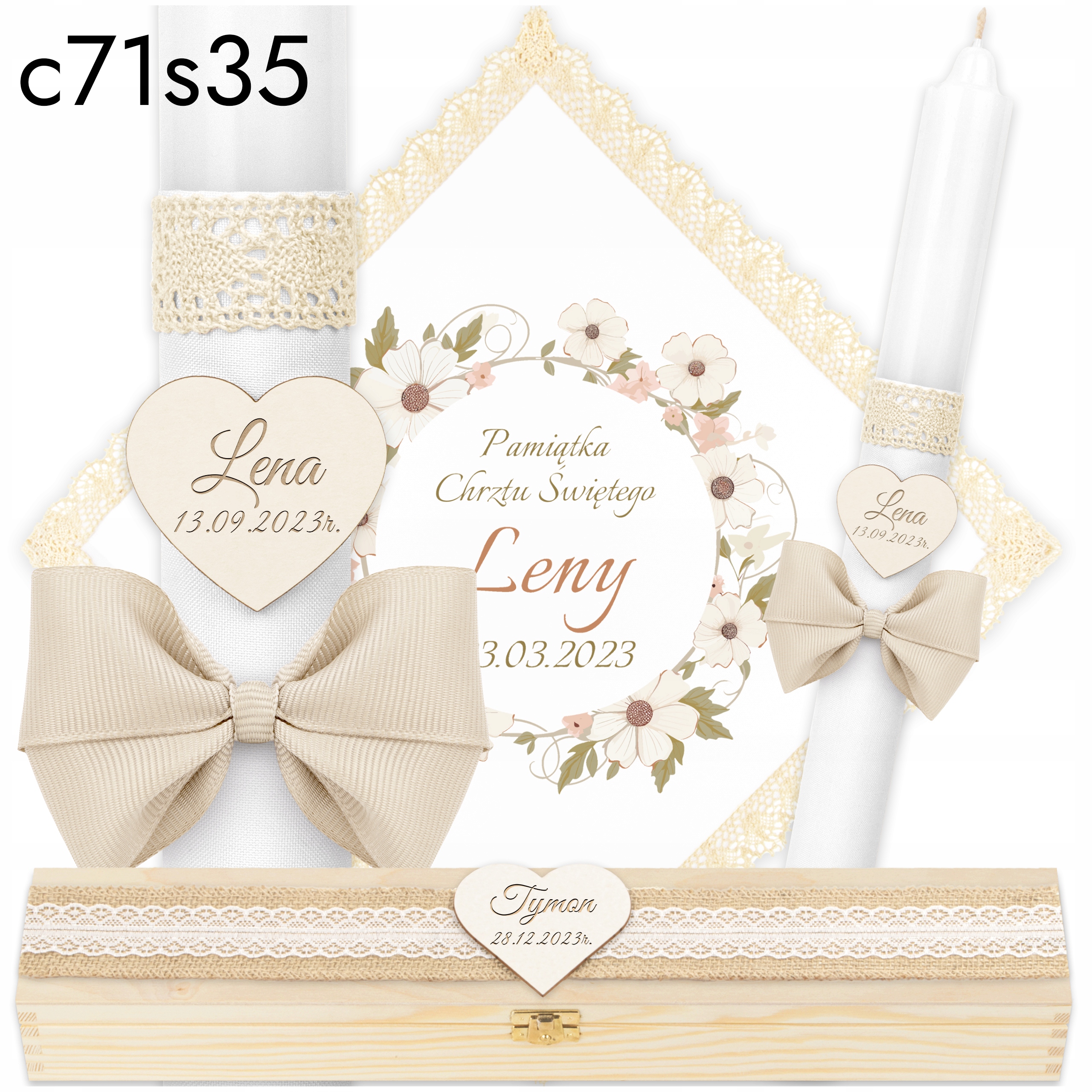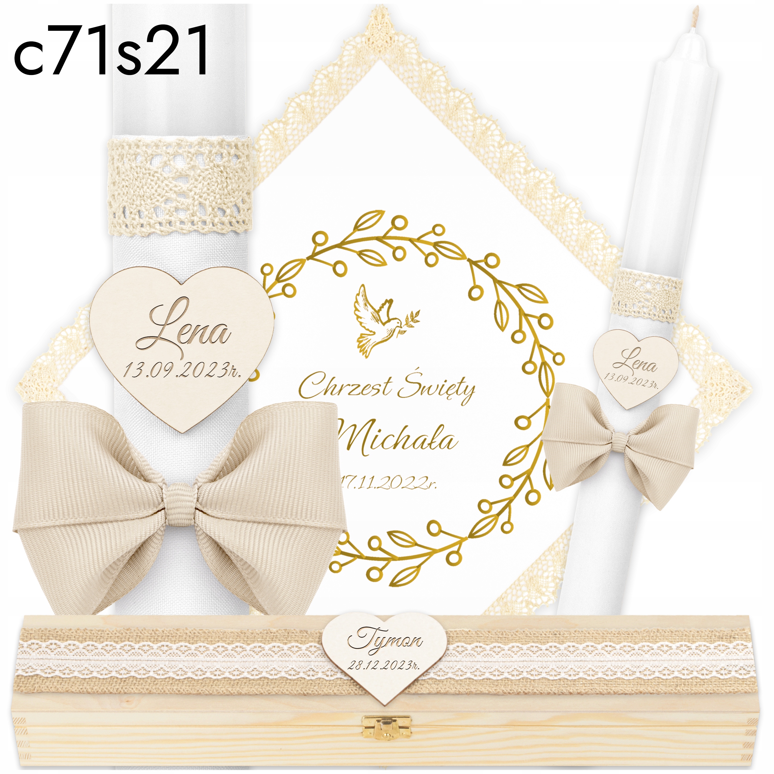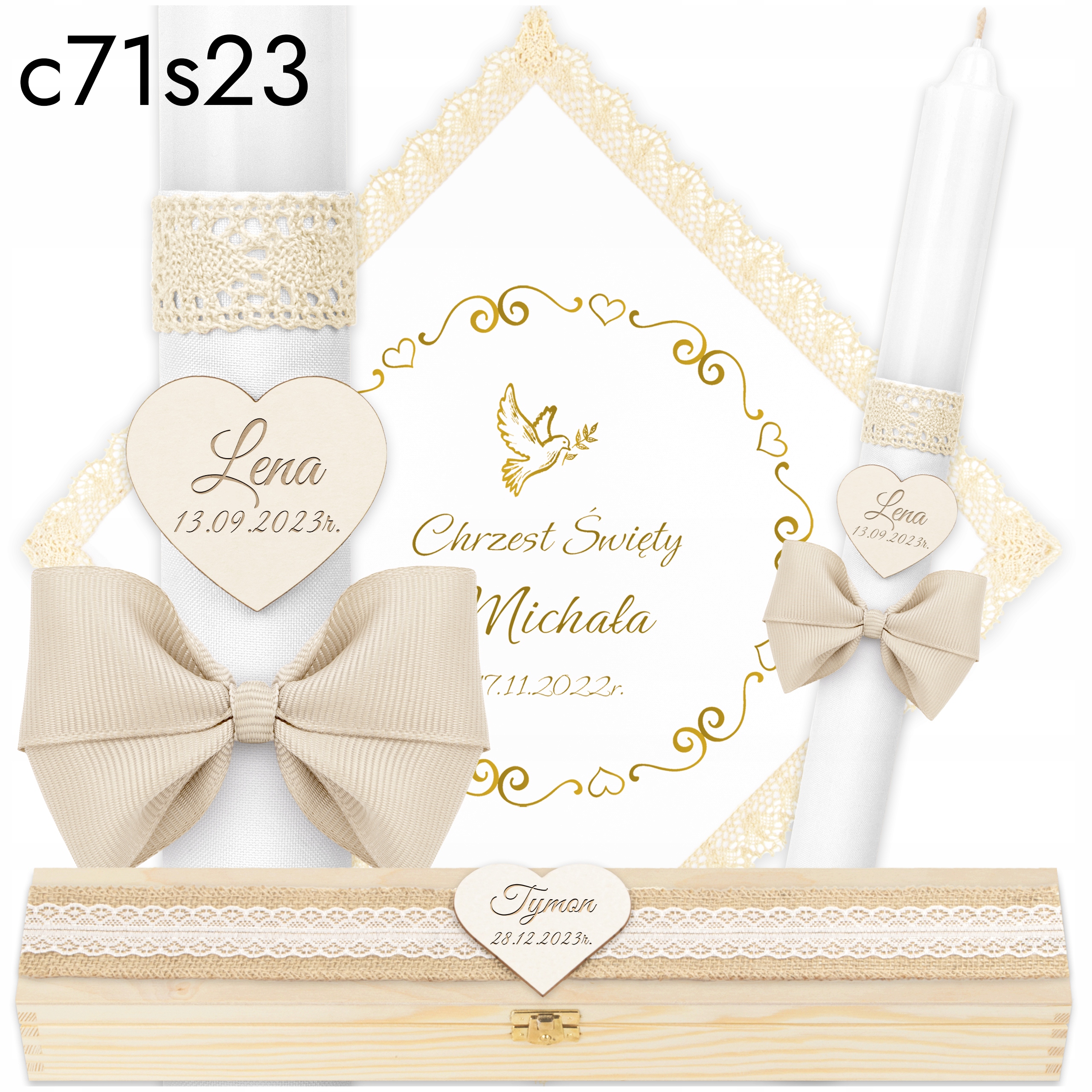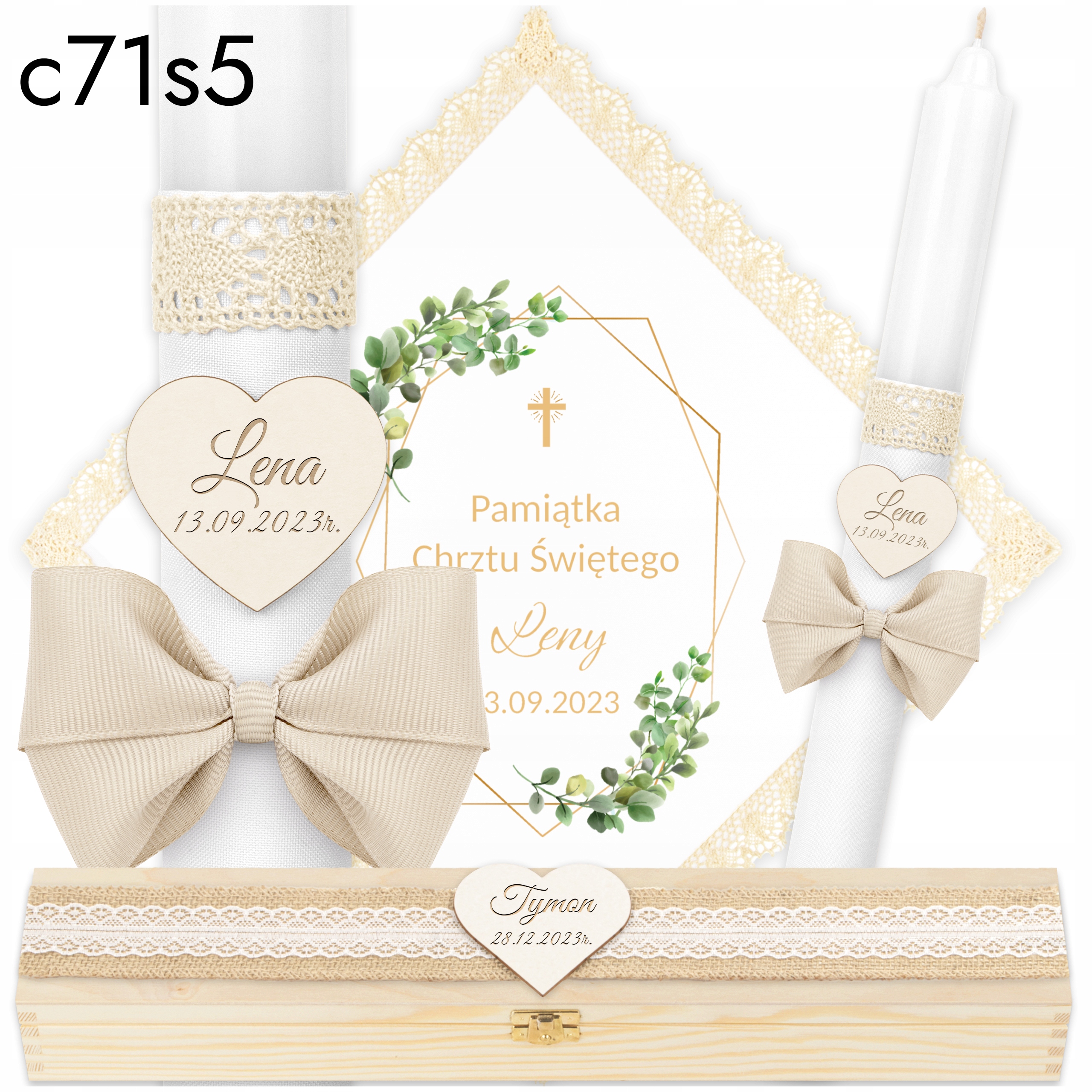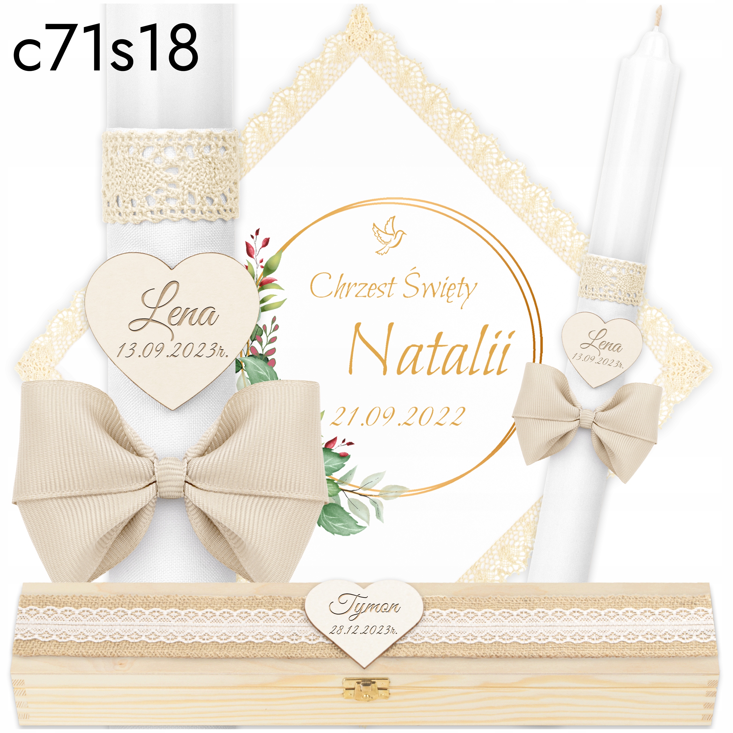 Хрестильне вбрання та свічка + коробка для свічок IHS Baptism Candle