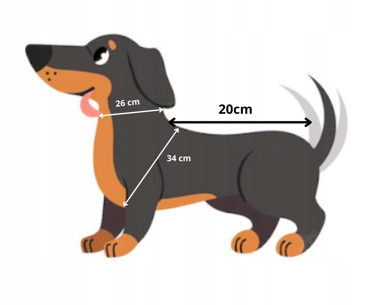 Виміряйте окружність собаки в місцях, позначених на малюнку. Поміри слід зробити вільно. Потім додайте приблизно 2 см до вимірювань, щоб собаці було зручно в одязі.