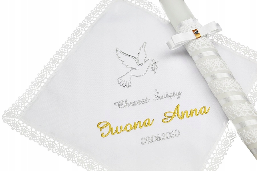 ПРЕДМЕТ з елегантною вишивкою імені та датою хрещення, розмір 26 х 26 см