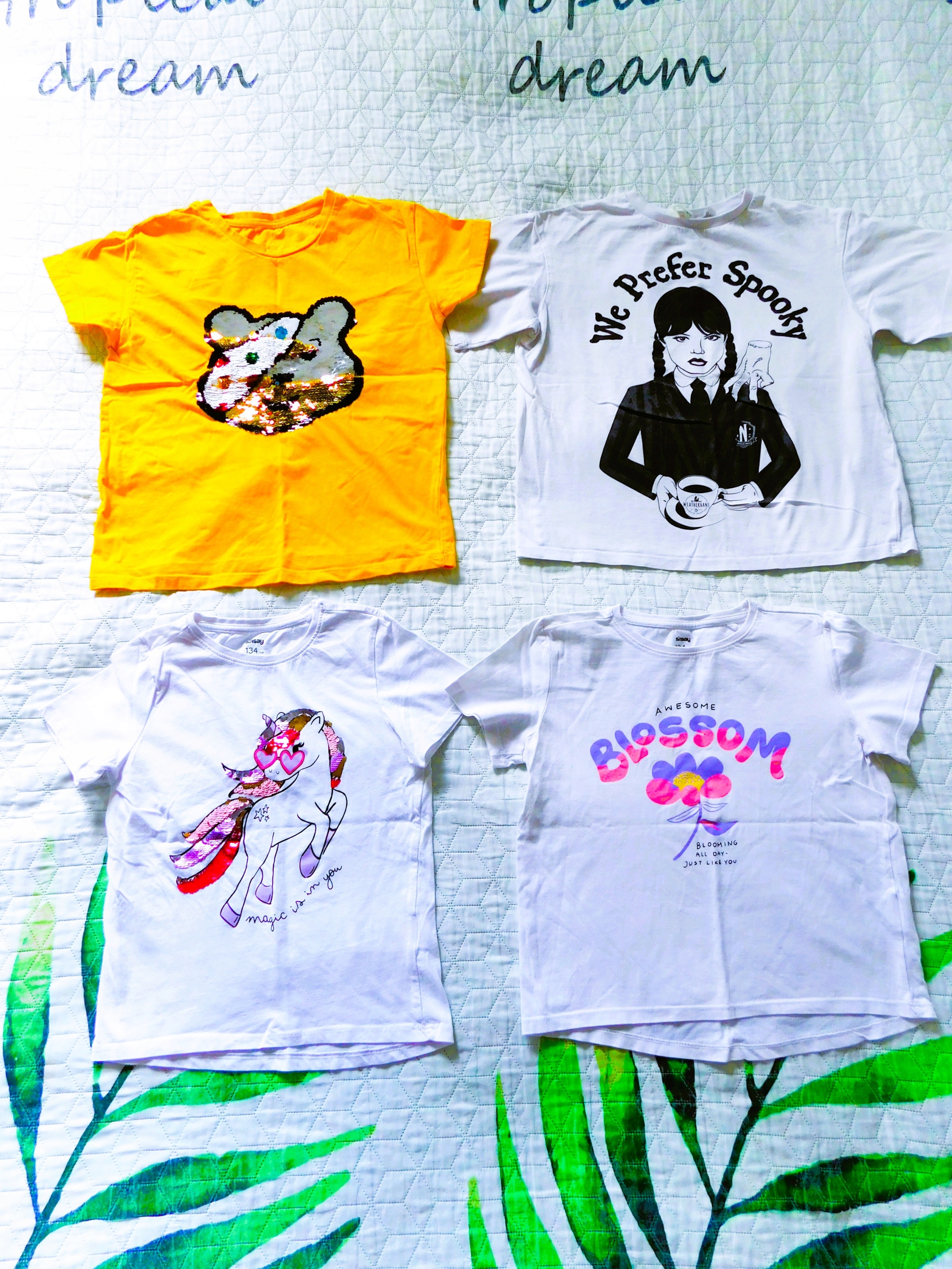 Іноді на етикетці відбуватиметься інший розмір, але одяг підходив до дочки в діапазоні 134/140. Стилізація саме вчасно для невеликого моднісі :)