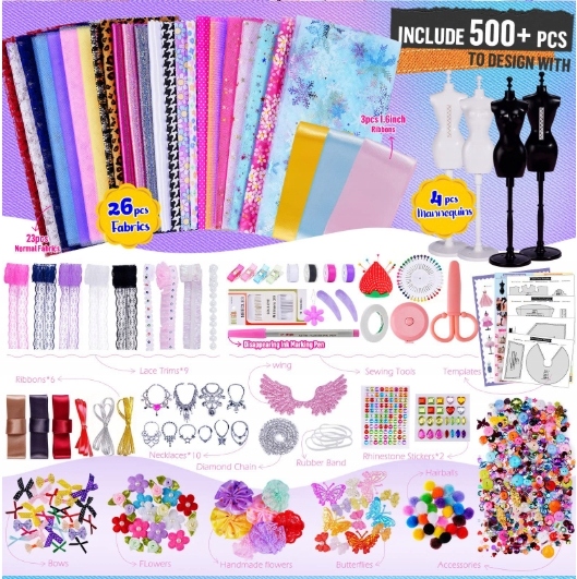 Набір містить елементи кравець , які дозволяють невеликому дизайнеру створювати унікальні творіння! Комплект включає матеріали, манекени, тюль, намистини, адаптовані аксесуари, стрічки, нитки та набір прикрас, необхідних для створення гарних суконь для ляльок. Діти можуть вибирати візерунки, вирізати тканини, влаштовувати деталі та створювати власні стильні дизайни одягу. Це захоплюючий досвід, який розвиває їх творчість та ручні навички.