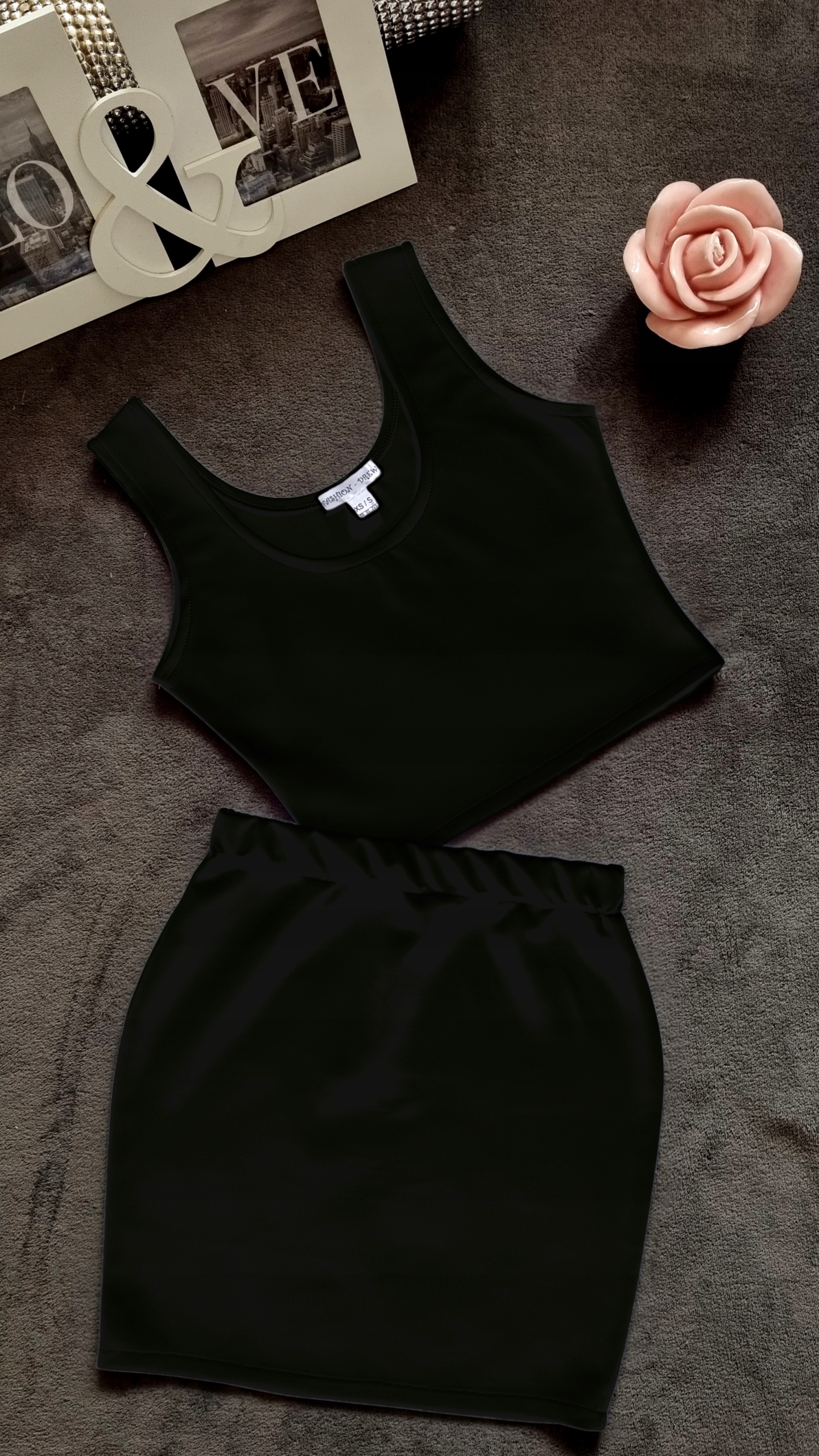 Одягніть джинси 2 частковий верх з брекетами + міні -спідниця на гумці S/M