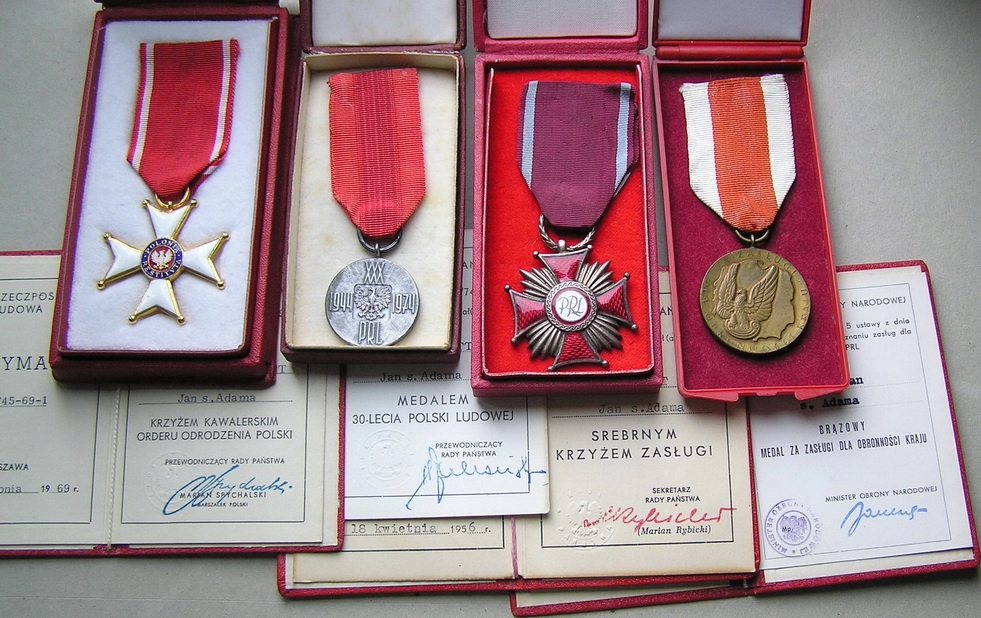 Odznaczenia w pudełkach z legitymacjami po jednej osobie zest 4 szt