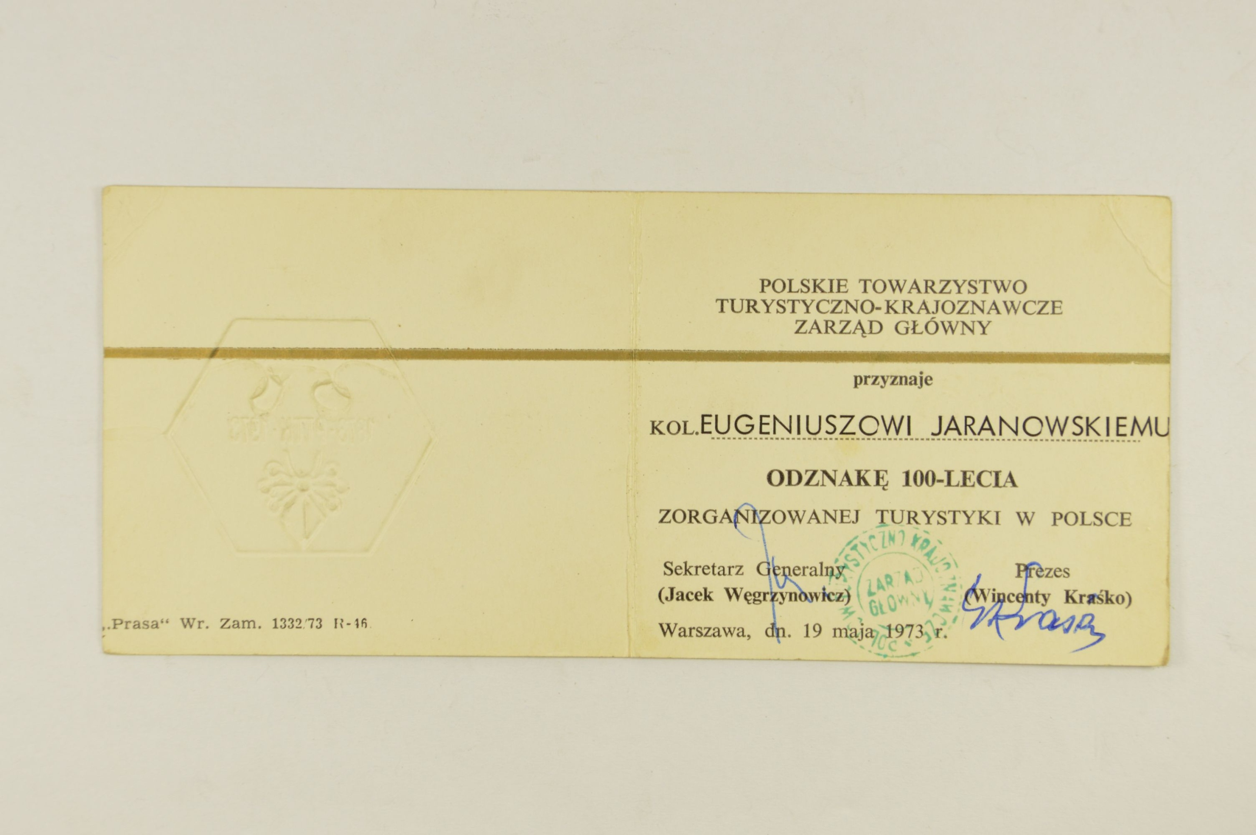 ODZNAKA 100 LAT PTTK 1873-1973 r. LEGITYMACJA ZOBACZ!