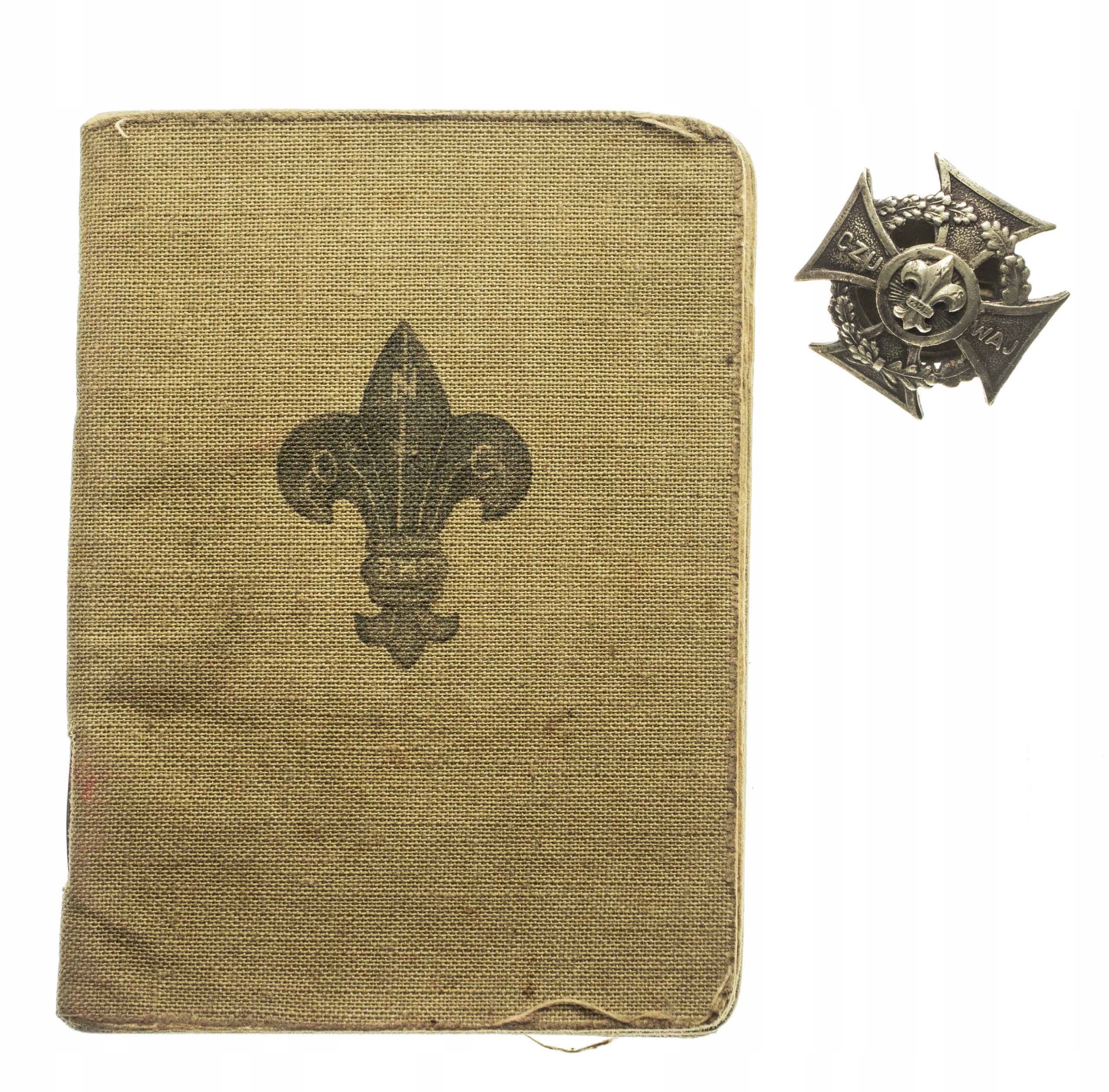 ODZNAKA KRZYŻ HARCERSKI + LEGITYMACJA 1945, ŁASICE / SIEDLCE, ZGODNE NUMERY