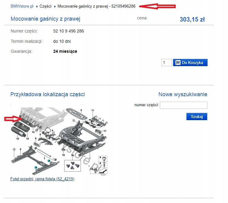 Ціна на схемі нижче від дилера (303,15 злотих) стосується лише металевого монтажного кронштейна та вказує на моделі він для BMW підходить точно. Вогнегасник і пластиковий контейнер також підходять для інших моделей BMW