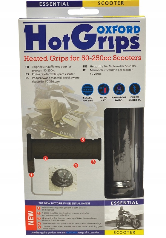 Серія ручок з підігрівом для мотоциклів ATV QUAD з панеллю керування V7, що дозволяє точно регулювати температуру нагріву. Панель управління оснащена опуклими кнопками, що дозволяє виконувати точні операції в мотоциклетних рукавичках. Ручки перемикання передач підходять для мотоциклів з кермом діаметром 22 мм. Виготовлений з монолітного м'якого гумового лиття з вбудованими нагрівальними елементами. Проста збірка з можливістю регулювання шляхом обрізання торців. Спеціально запрограмований регулятор запобігає повній розрядці батареї під час використання весла в нерухомому стані. У комплект входить: