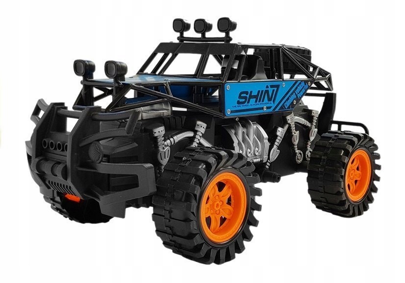 Ідеальна пропозиція для ентузіастів позашляховиків. Позашляховик може впоратися з будь-якою місцевістю, транспортний засіб має масивну, позашляхову конструкцію, величезні колеса з помаранчевими елементами виділяються здалеку і створюють враження потужності автомобіля. Ззаду на будівельних лісах встановлено додаткове колесо, яке завжди стане в нагоді, якщо автомобіль поламається.