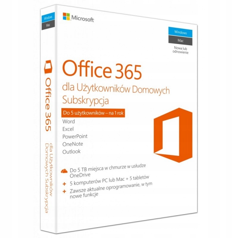 Microsoft Office 365 Home Premium PL 32/64-bit, 1 рік, до 5 користувачів