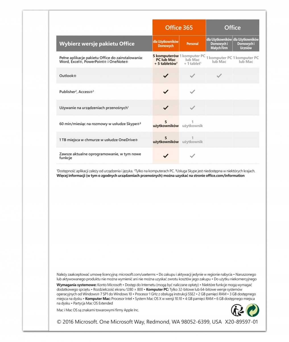 Останні версії всього найкращого у своєму класі програмного забезпечення та хмарних служб, включаючи Skype і SkyDrive, щонайбільше на п’яти планшетах Windows, ПК або Mac.1