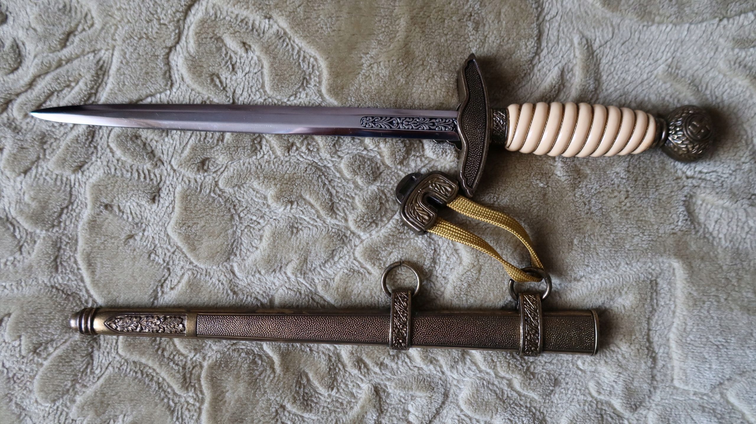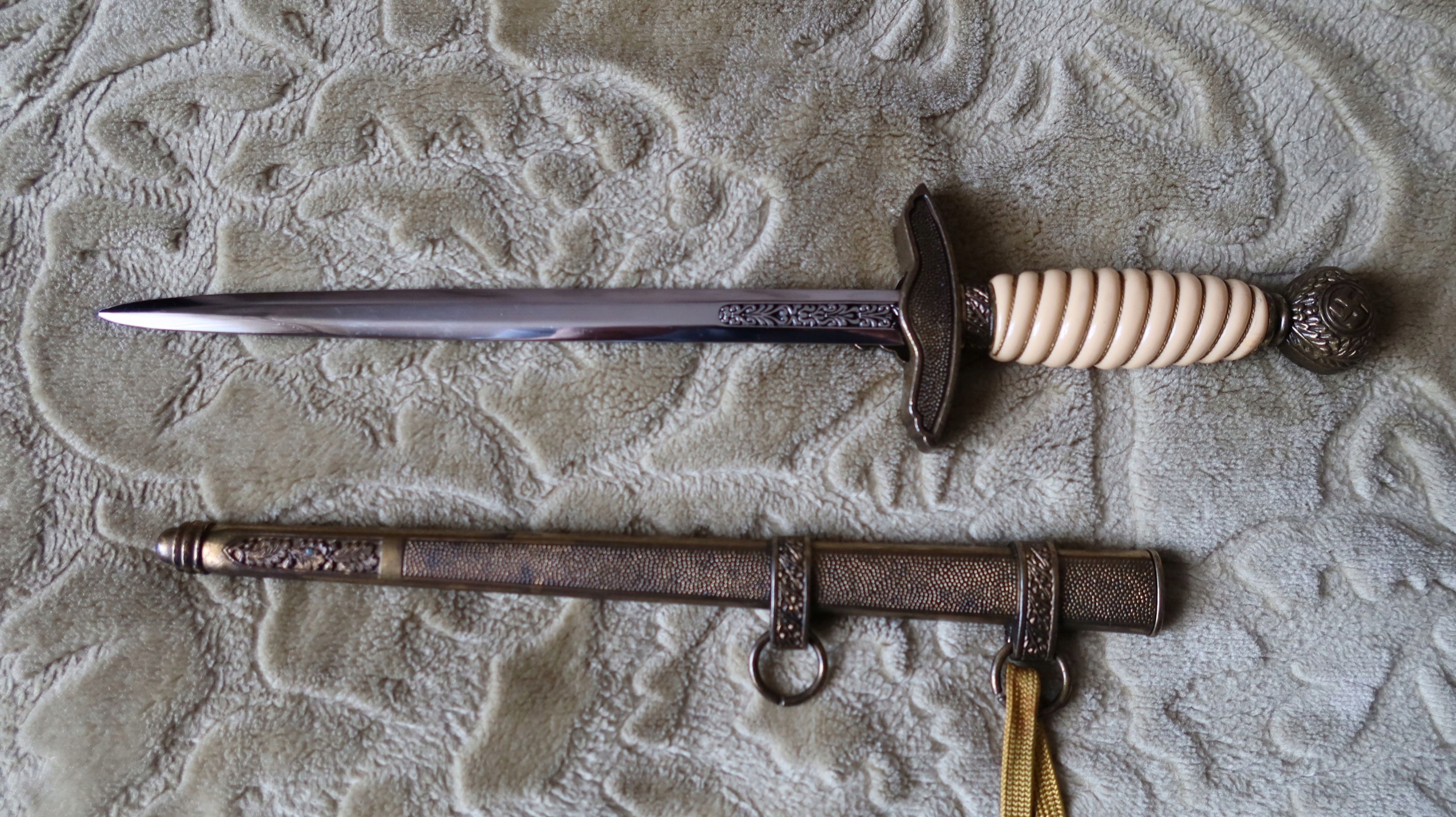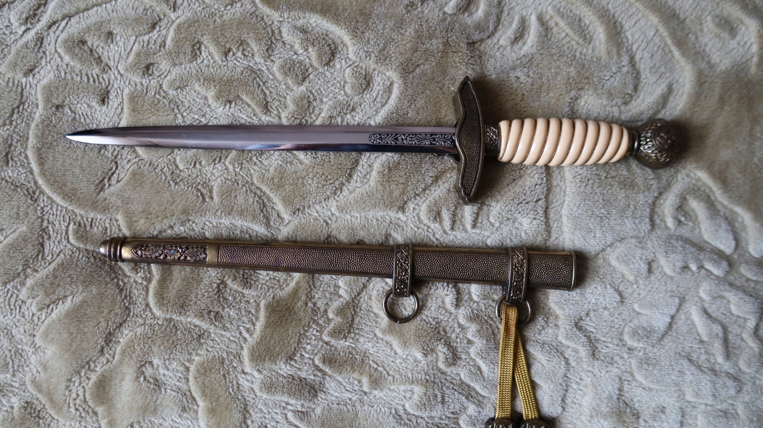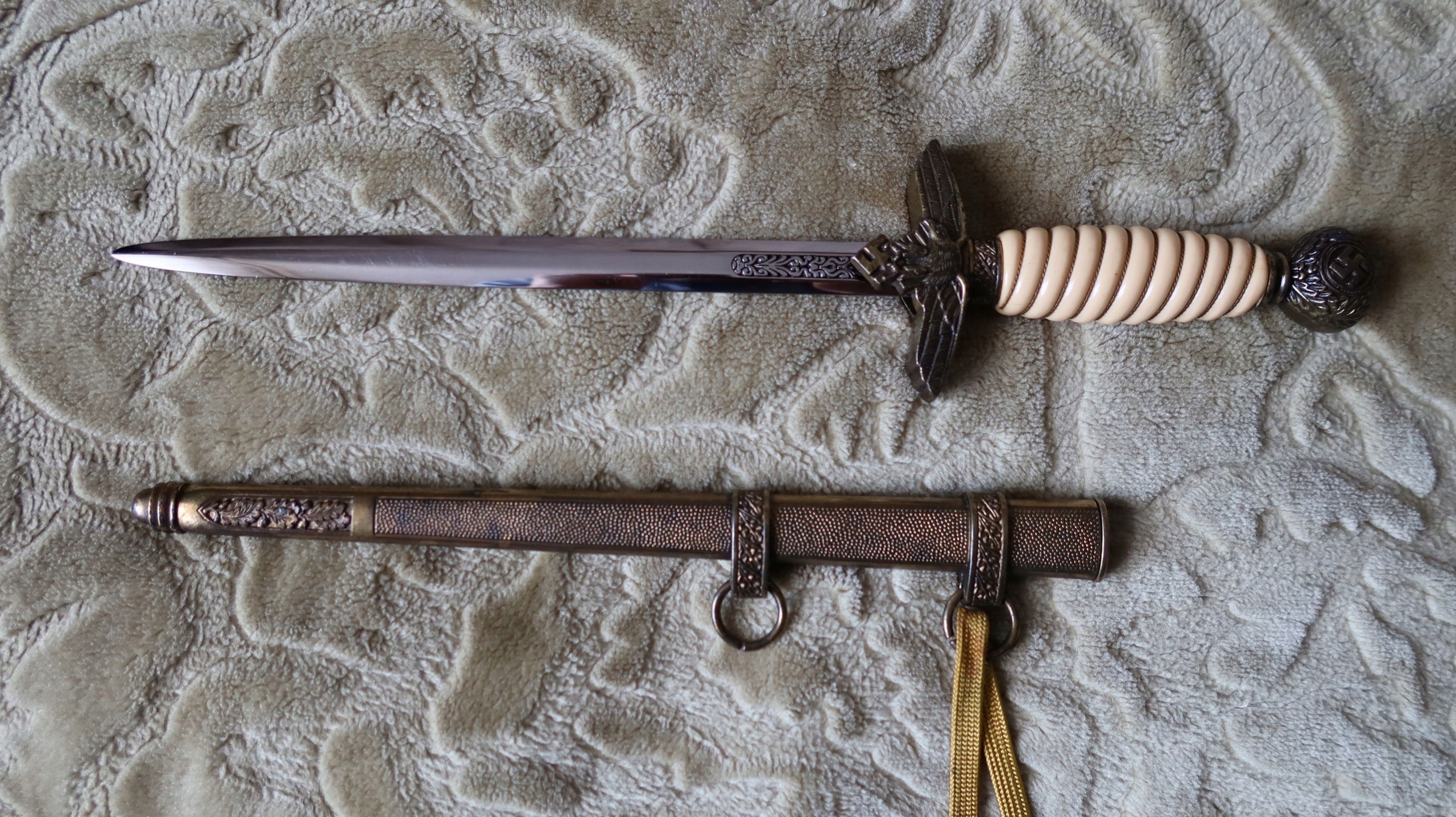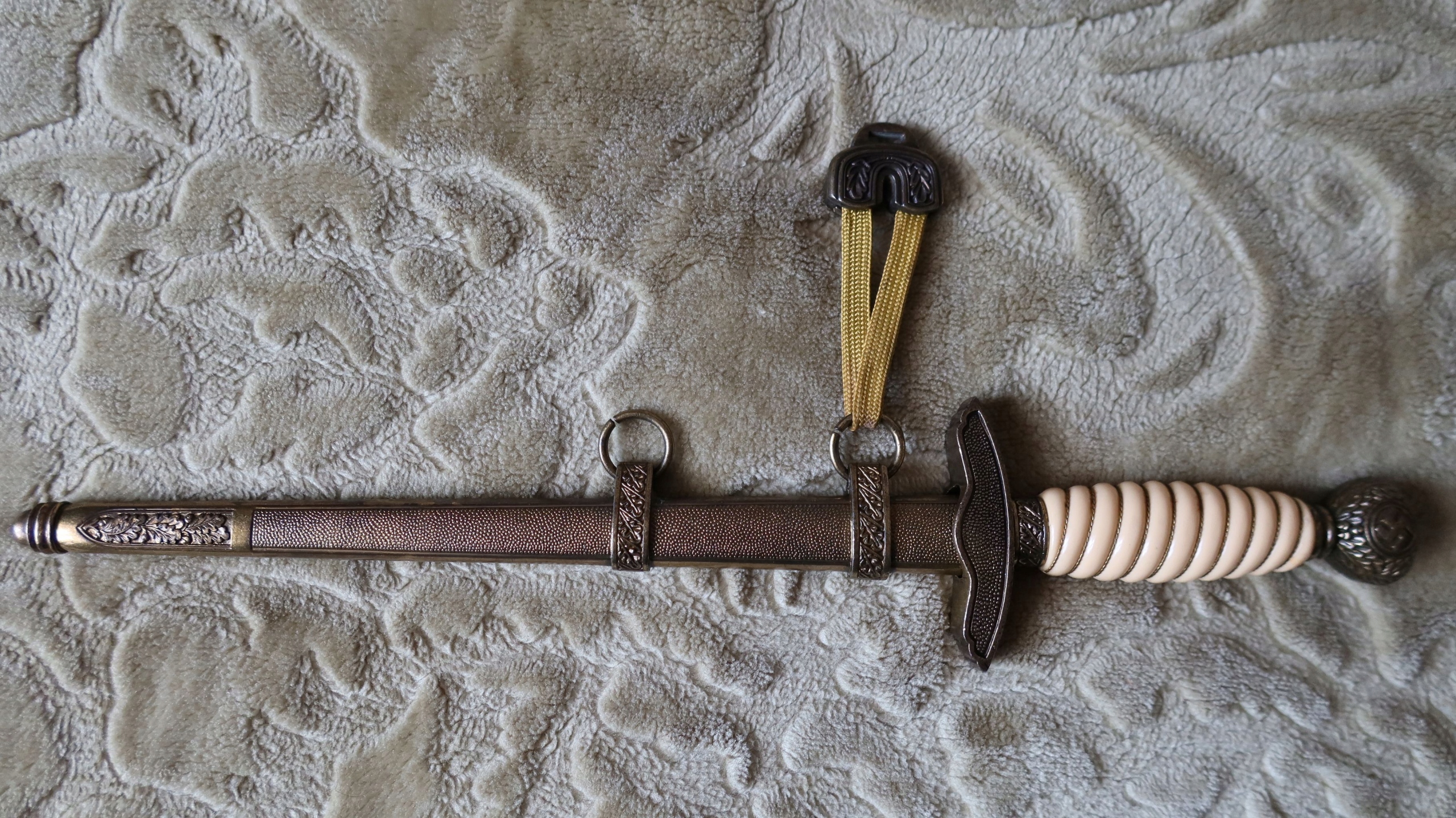 для продажу офіцера шнура Luftwaffe III Рейх Репліка, зроблена в 2000 році в Іспанії. Шнур у оригінальному стані магазину, нічого не намальовано, нічого не було зроблено, не очищено. Оригінальний стан ручки, леза, піхва. Продаж моєї приватної колекції.