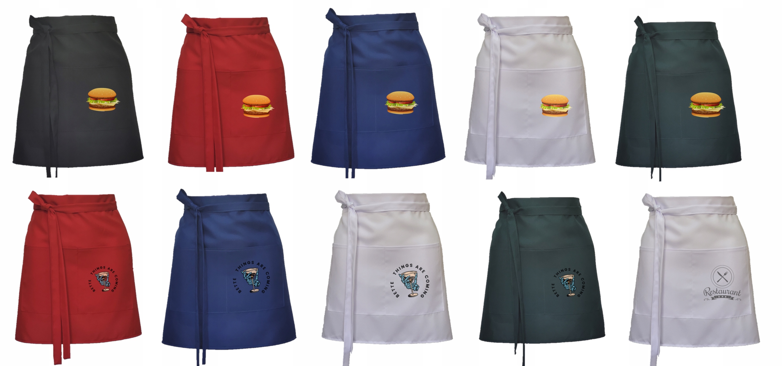Гастрономічний фартух з подвійною кишенею виробництва BaMax. Виготовлений з високоякісної легкої поліестерової тканини без обмежень, зав'язується спереду або ззаду. Шарф з логотипом компанії виділить ваш бренд на ринку кейтерингових послуг і забезпечить професійний вигляд ваших співробітників.