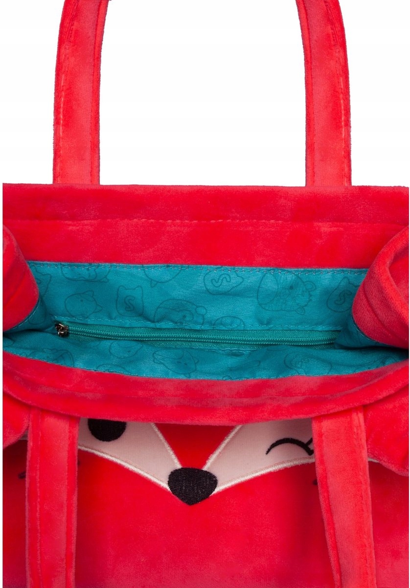 Сумка Squishmallows виготовлений із суперм’якого плюшу, схожого на зефір, прикрашений вишивкою та має меншу внутрішню кишеню на блискавці.