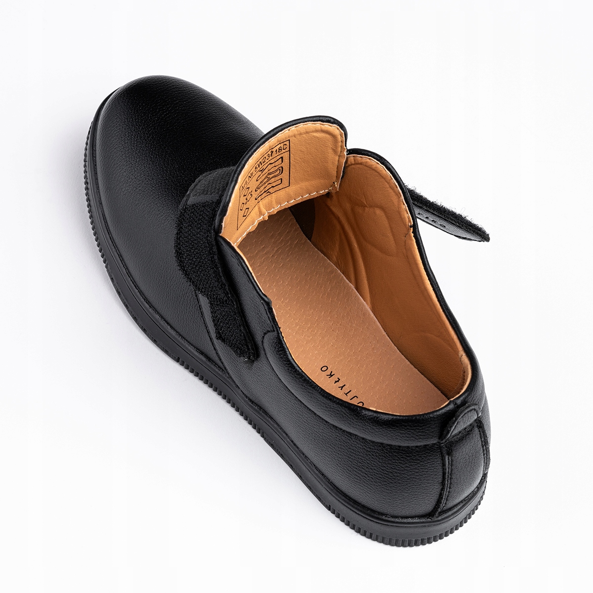 Взуття виготовлено з чорної екологічної шкіри, що забезпечує довговічність та легкість очищення. Взуття кріпиться на липучках, що полегшує їх швидке та зручне надягання та зняття, що є практичним рішенням для вашої дитини.