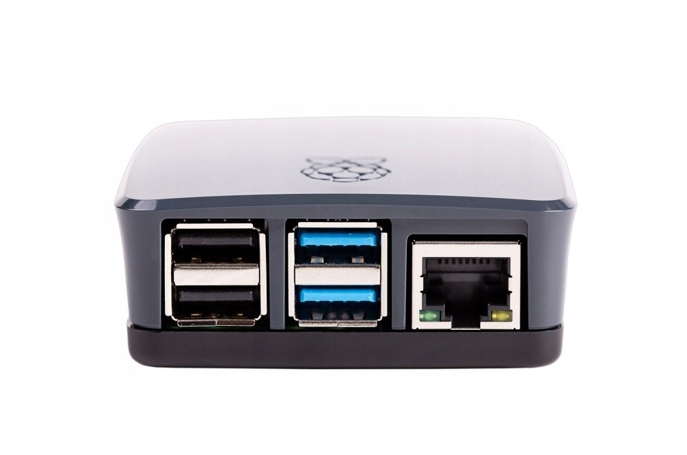 Офіційний чохол для комп'ютера Raspberry Pi 4 model B, чорно-сірий, виготовлений із пластику. Завдяки знімній верхній частині корпусу він забезпечує легкий доступ до портів: GPIO, інтерфейс дисплея та камери. Корпус має протиковзкі ніжки.