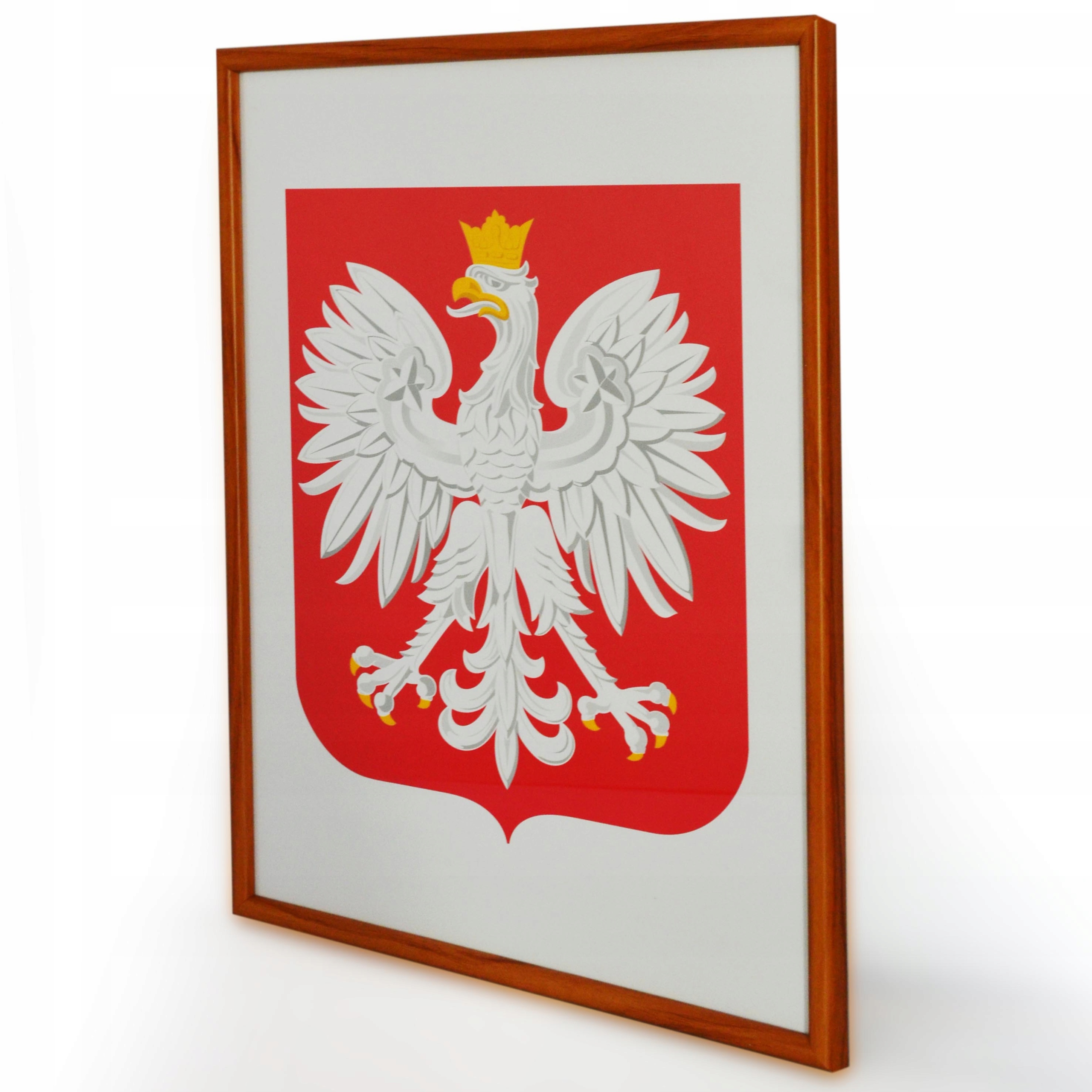 Польський герб розміром 30х21 см у світлій дерев'яній рамці - А4