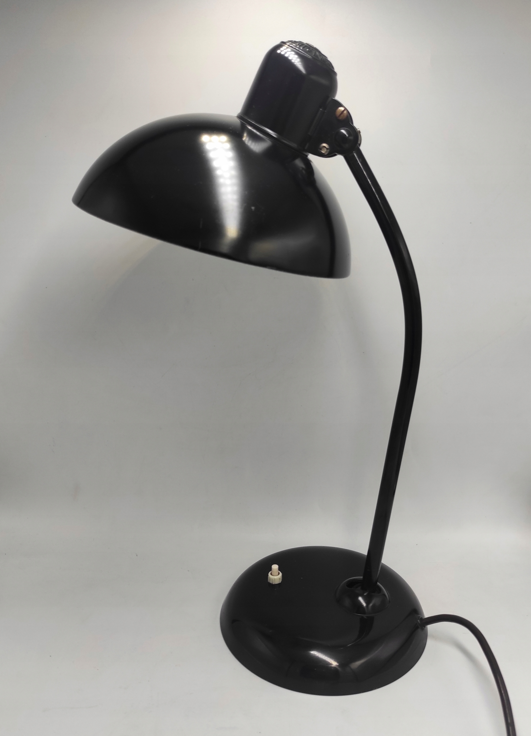 Феноменальна серія освітлення від KAISER є класикою жанру та абсолютним топом дизайну 20 століття та перлиною стилю, відомого як BAUHAUS. Цей термін відноситься до стилю дизайну інтер'єру, заснованого на простих кубістичних формах і високофункціональних предметах, створеного в 1913-1933 роках в Німеччині. Лампа, яку ми маємо, виконана в чорному кольорі та має характерні шарнірні кріплення, які додають лампі неймовірної функціональності, регулюючи промінь світла.