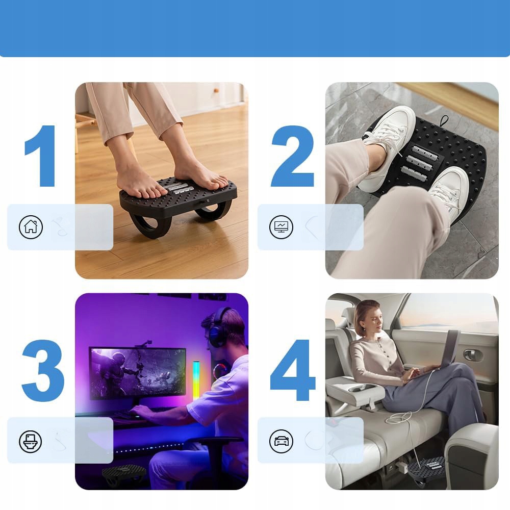Цей підставка під столом має регулювання 180 ° для підтримки ніг під бажаним кутом і дозволяє рухатися ногами вперед і назад без проблем. Портативна підставка - це більше, ніж просто місце для відпочинку, це інструмент декомпресії всього тіла.