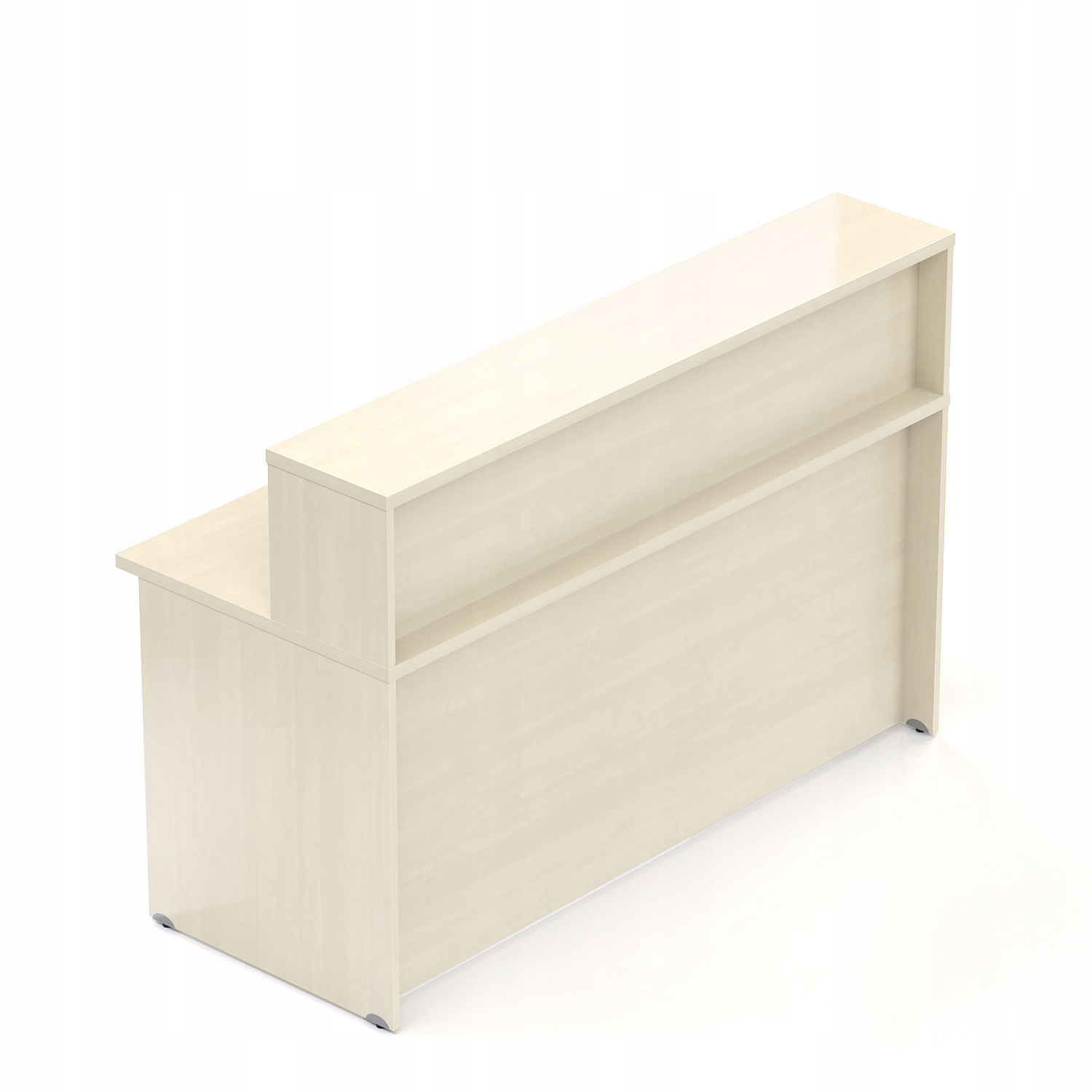 Стійка офісна, ресепшн висока зі стільницею. Стійка на плитних ніжках. Стільниця і верх надставки виготовлені з товстої дошки 28 мм, що забезпечує стабільність і комфорт використання. Прилавок має стандартні кабельні втулки та регульовані ніжки до 10 мм, що дозволяє вирівнювати прилавок на нерівній підлозі.