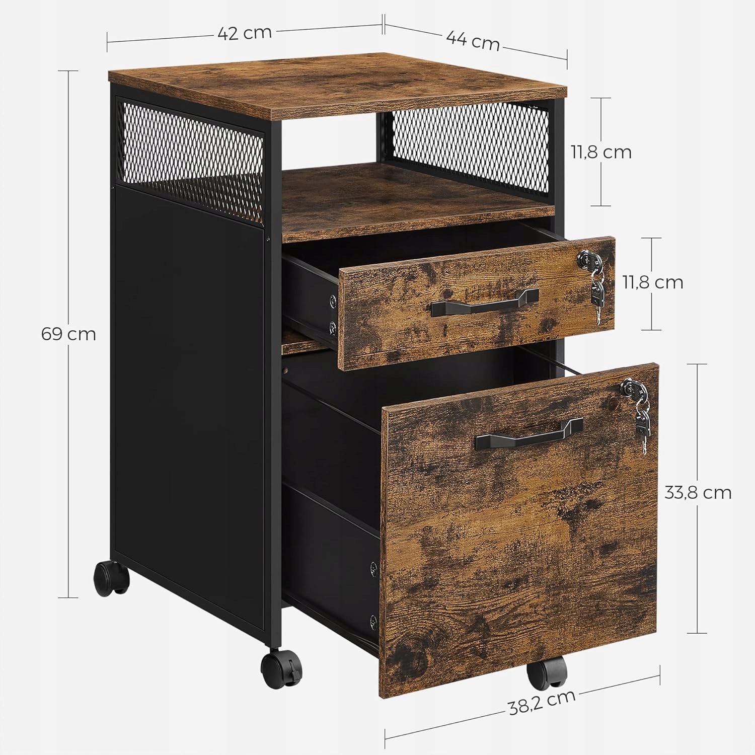 Для охайного офісу - пересувна шафа для документів VASAGLE в сільсько-індустріальному стилі допоможе тримати в порядку папери, папки та канцелярське приладдя. Відкрита полиця вгорі дозволяє виставляти прикраси, у верхній шухляді можна розмістити ручки та дрібні аксесуари, а в нижній шухляді можна розмістити папки формату A4 або листи.