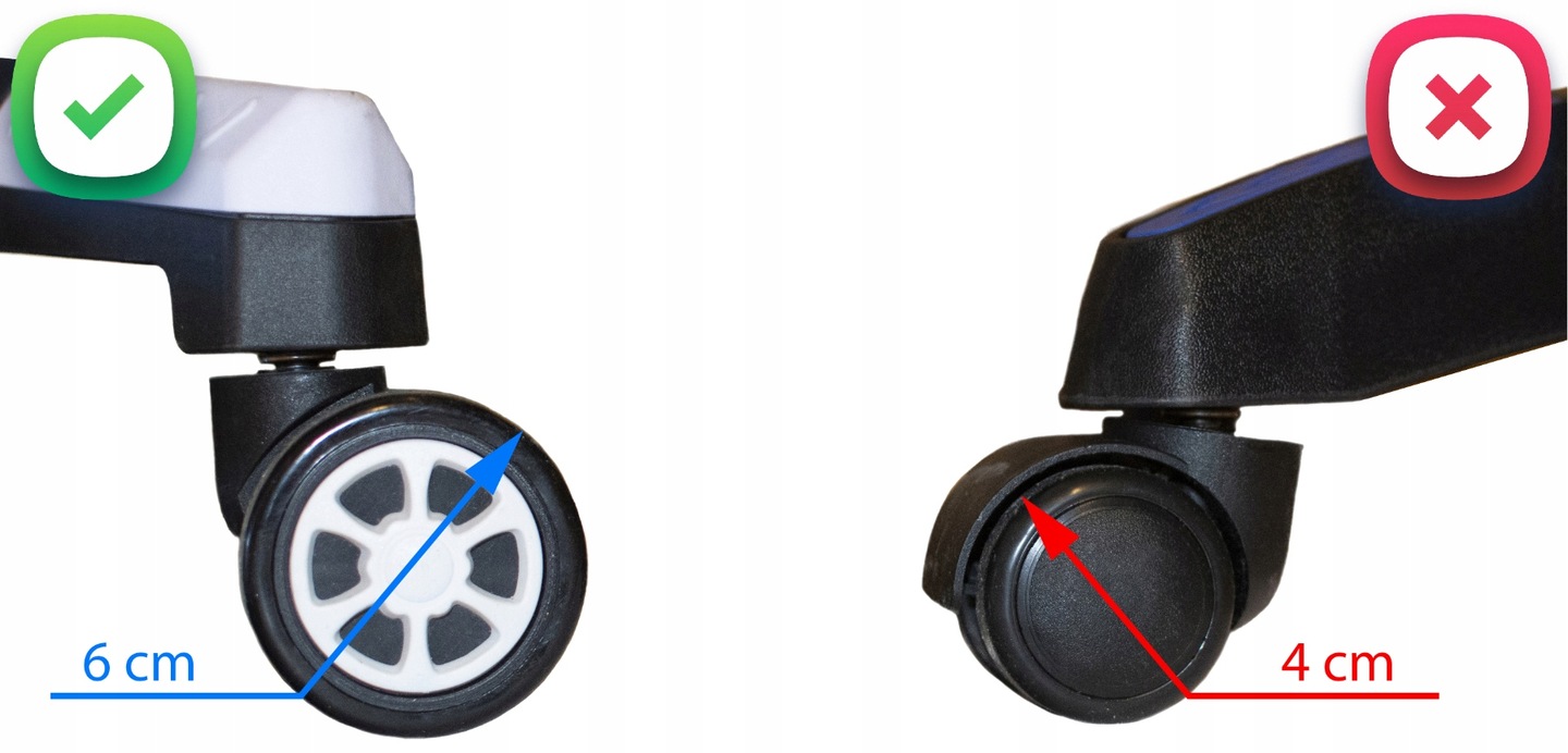 - Колеса крісла вкриті міцною гумою, яка запобігає дряпанню та пошкодженню підлоги