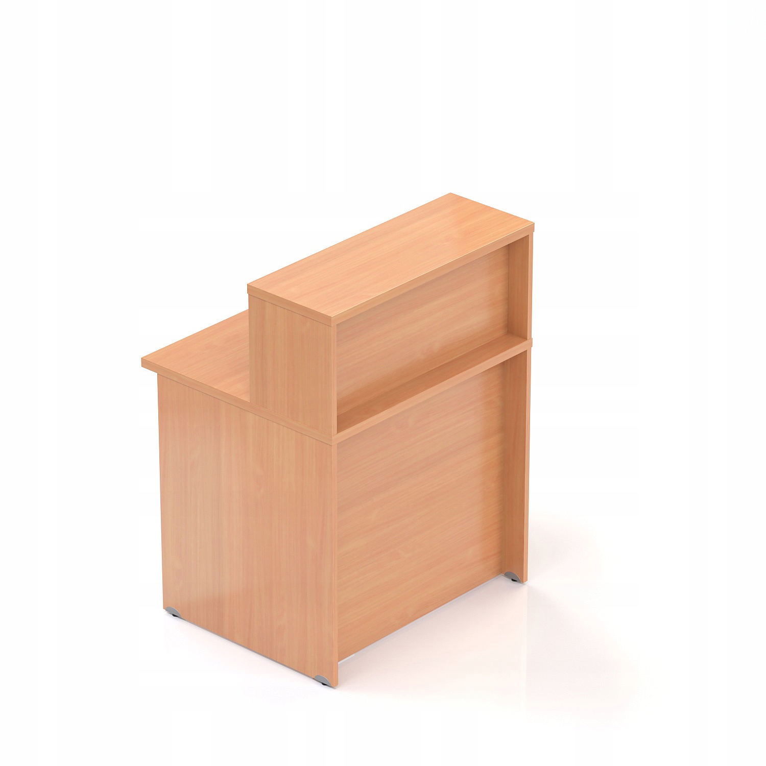 Стійки магазину, офісу та ресепшн, високі з надбудовою. Стійка на плитних ніжках. Стільниця і верх надставки виготовлені з товстої дошки 28 мм, що забезпечує стабільність і комфорт використання. Прилавок має стандартні кабельні втулки та регульовані ніжки до 10 мм, що дозволяє вирівнювати прилавок на нерівній підлозі.