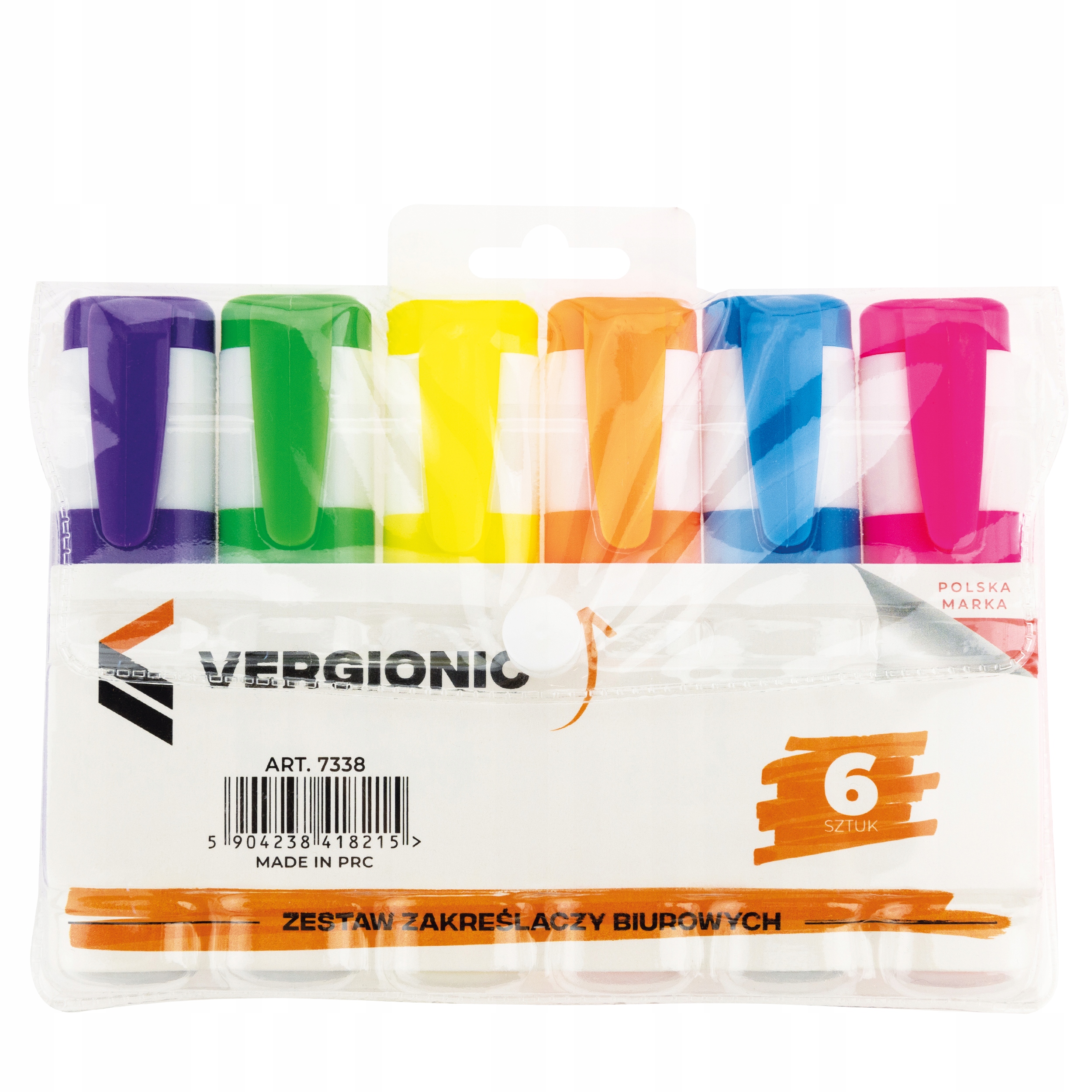 Хайлайтери також використовуються в навчальній чи письмовій роботі, особливо у випадку багатосторінкових досліджень, де потрібно відібрати найважливішу інформацію. Пропозиція включає 6 кольорів: фіолетовий, зелений, жовтий, помаранчевий, синій і рожевий, а прозоре чорнило дозволяє легко читати позначений вміст. Кожен хайлайтер має корпус відповідного кольору та ковпачок для запобігання висиханню. Набір упакований в зручну прозору упаковку.