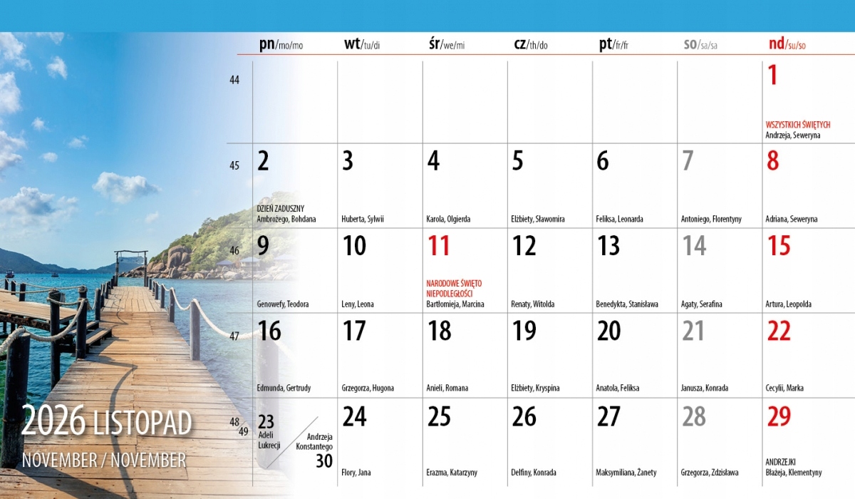 Місце для короткого запису на кожен день. У календарі є іменини та національні, релігійні та особливі свята.