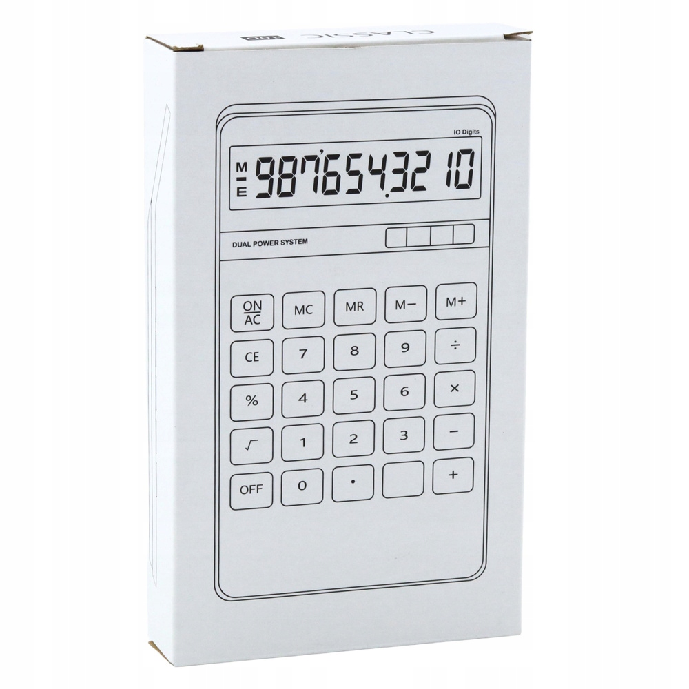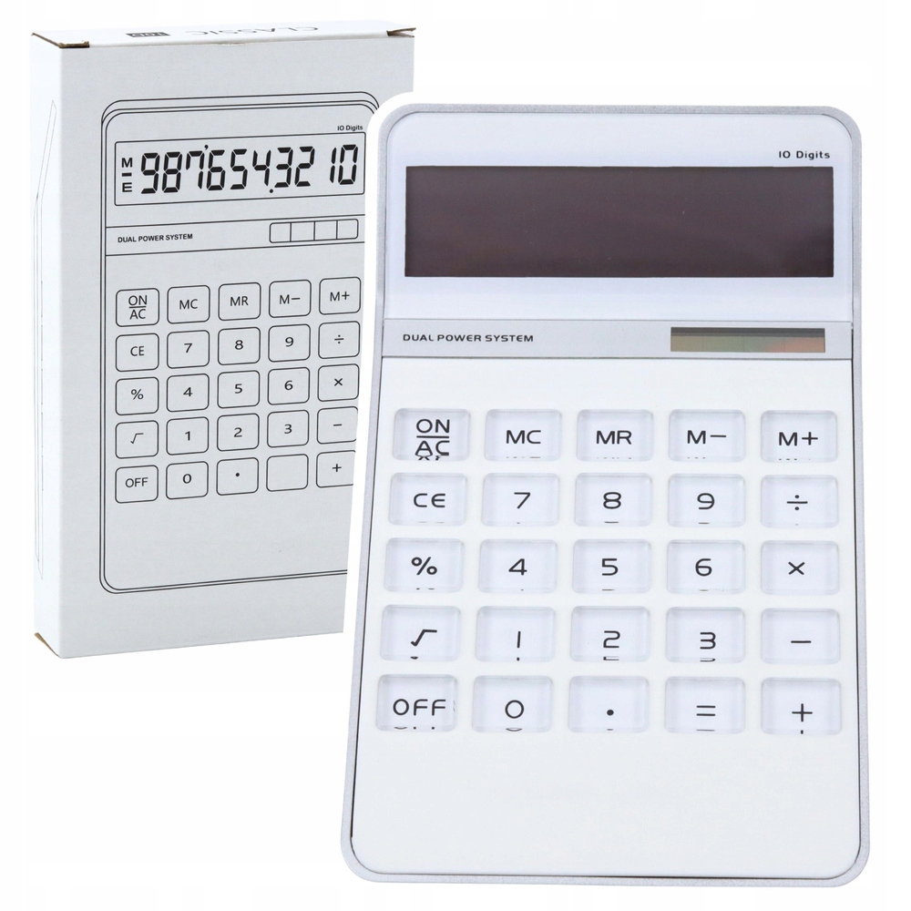 Білий офісний калькулятор – 10 цифр, сучасний дизайн, подвійне живлення