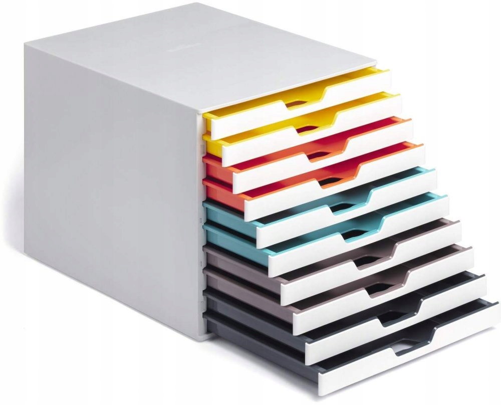 - Контейнер із 5 різнокольоровими шухлядами, виготовлений із високоякісного пластику, допомагає впорядковувати документи.